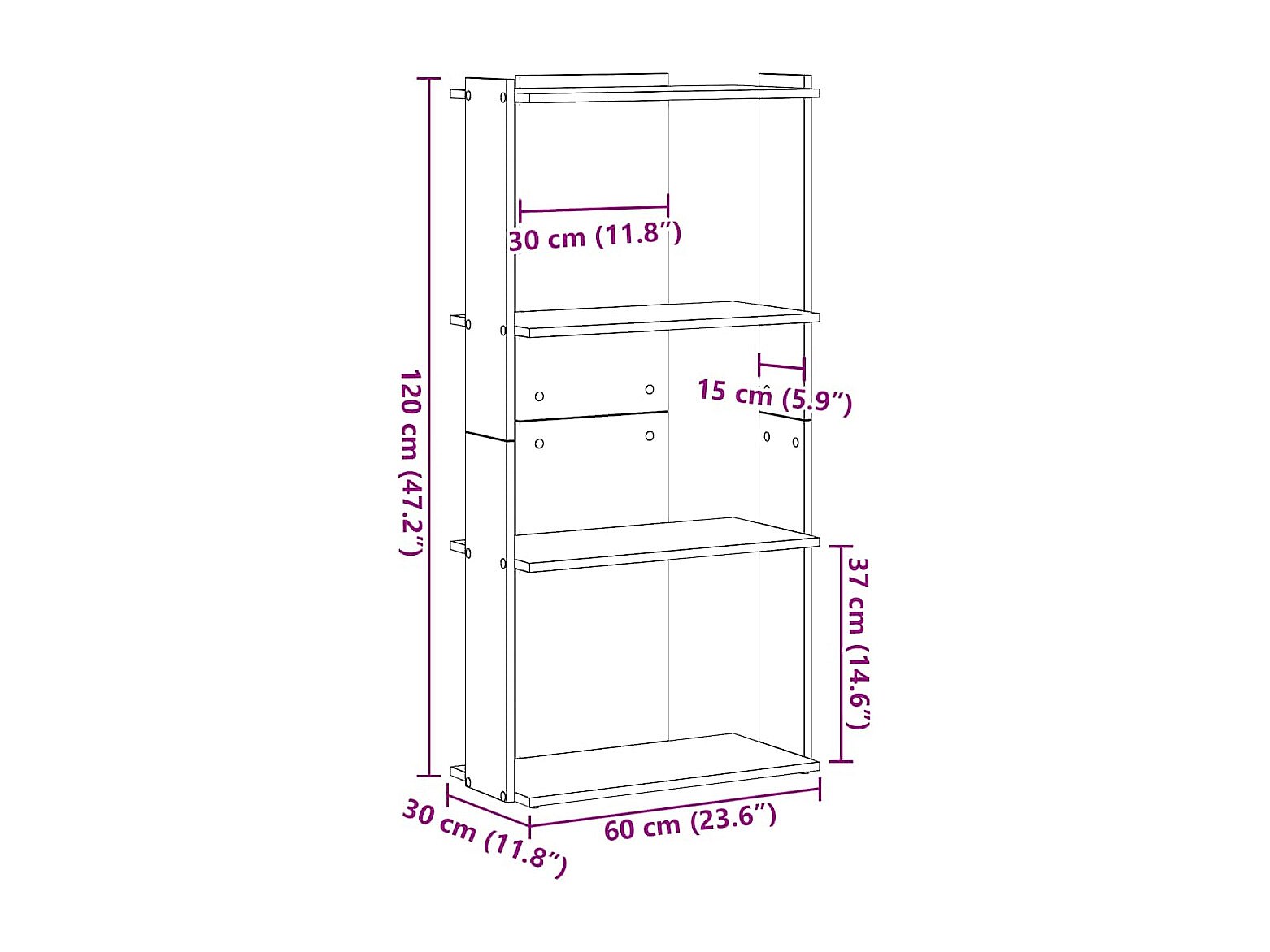 Librería de 3 niveles madera gris hormigón 60x30x120 cm