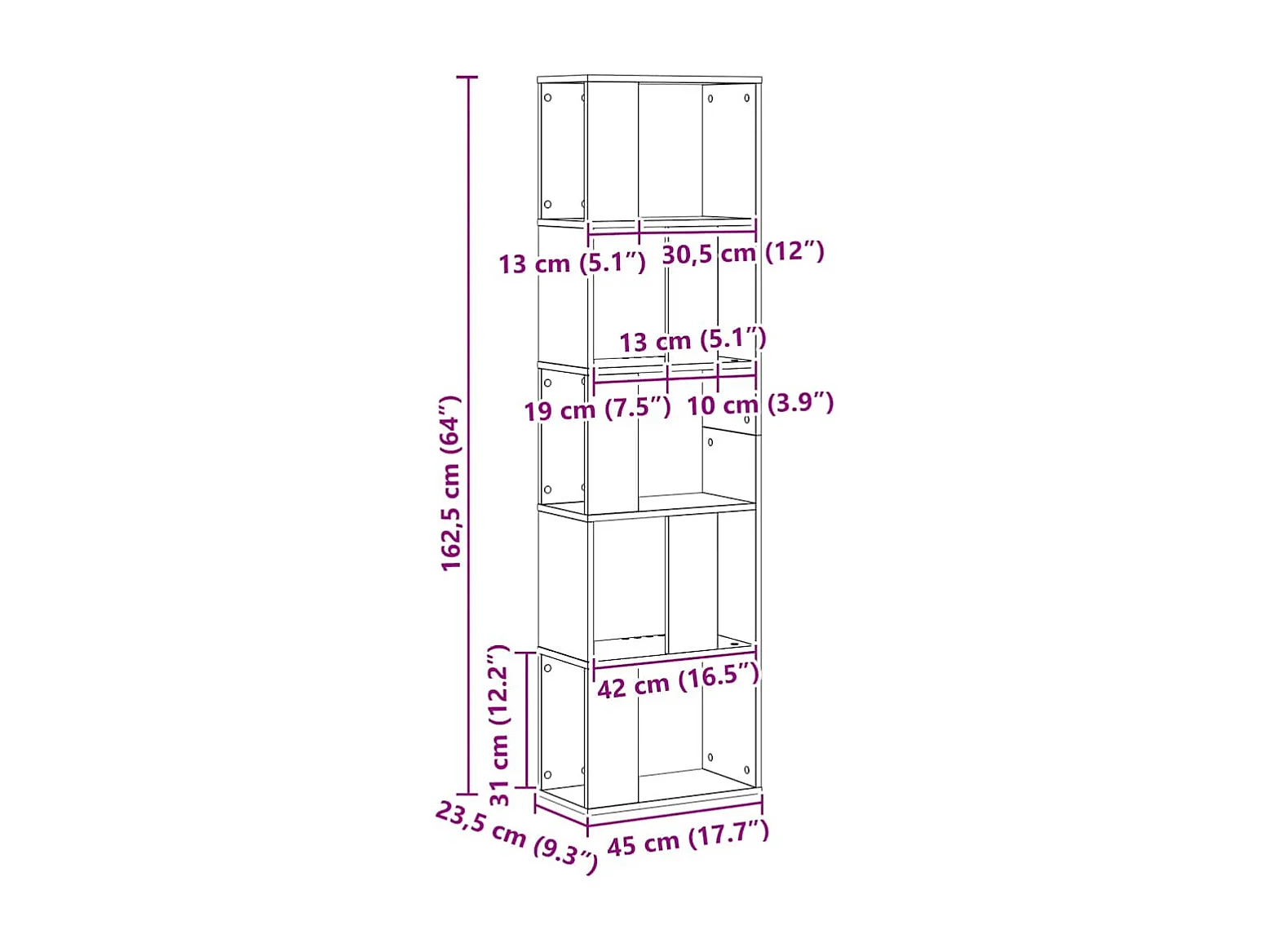 Librería de 5 niveles, roble Sonoma, madera de ingeniería