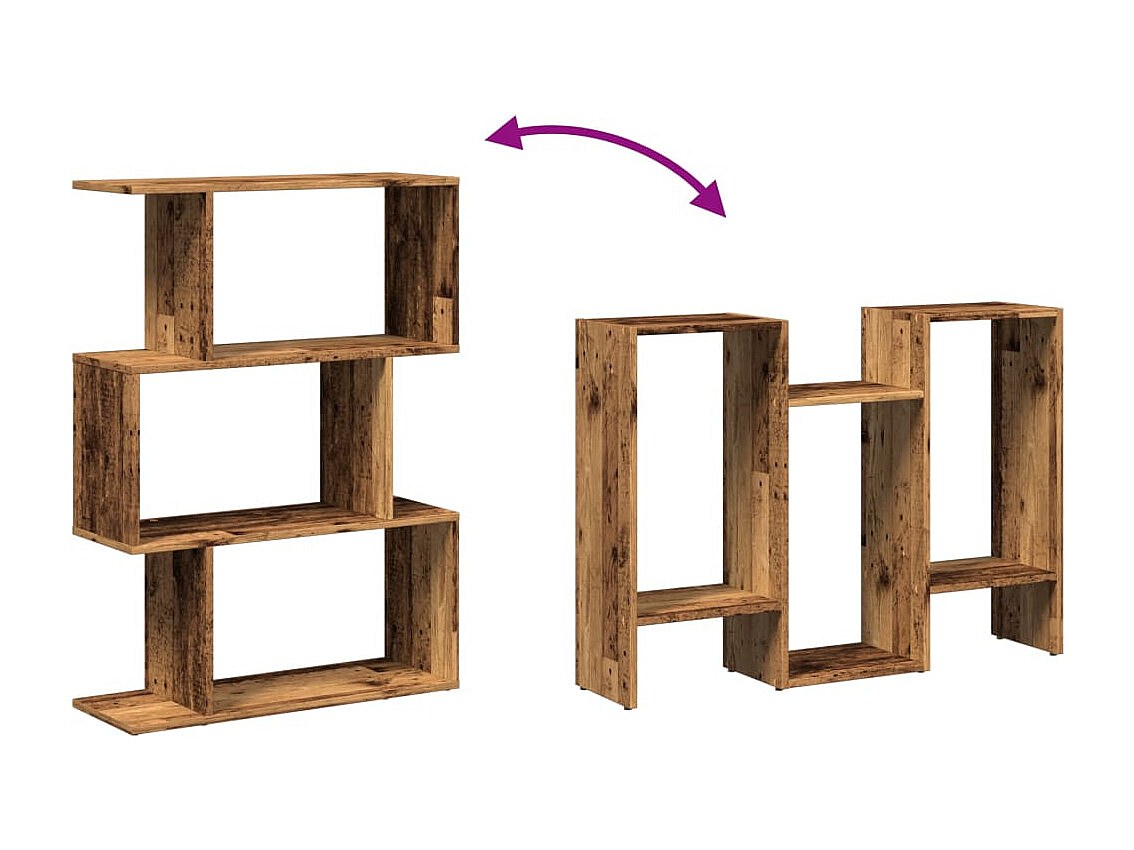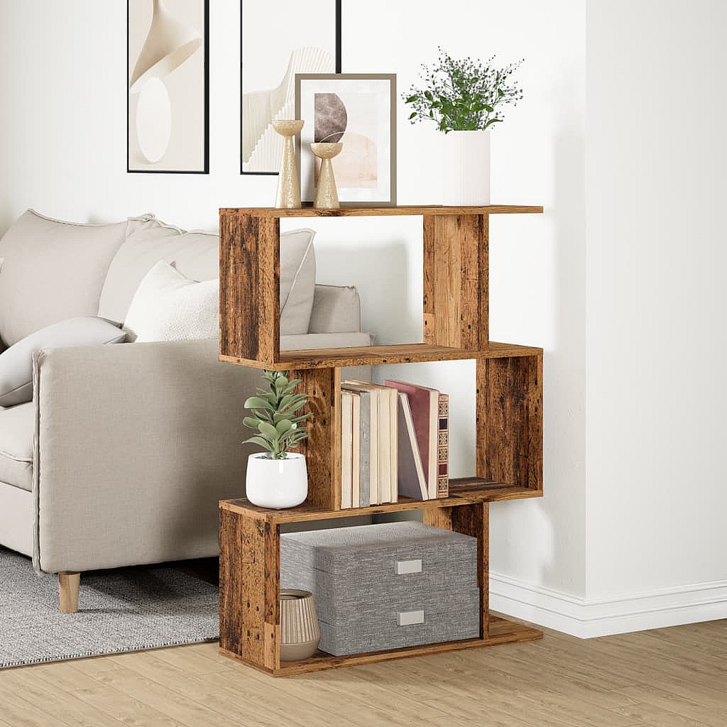 Librería divisora 3 niveles madera envejecida 70x24x97 cm
