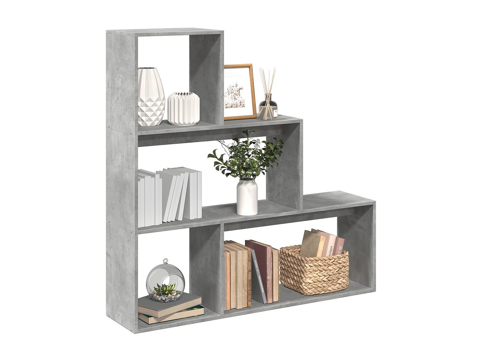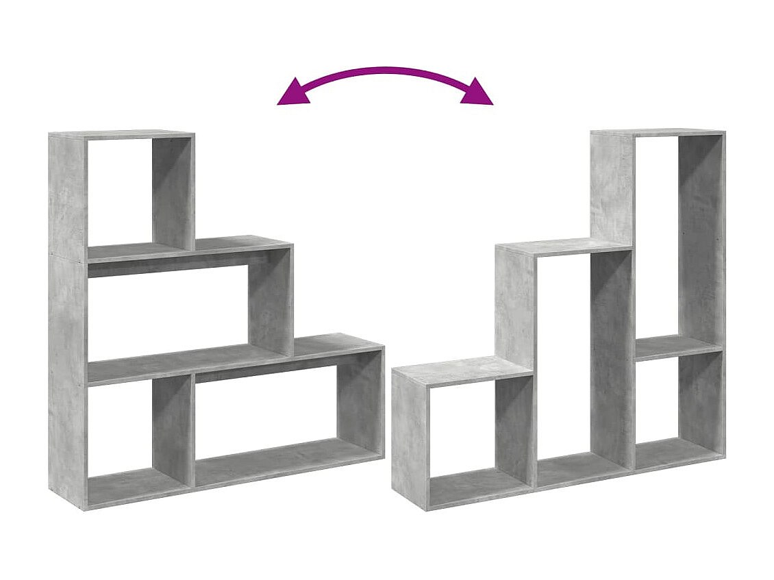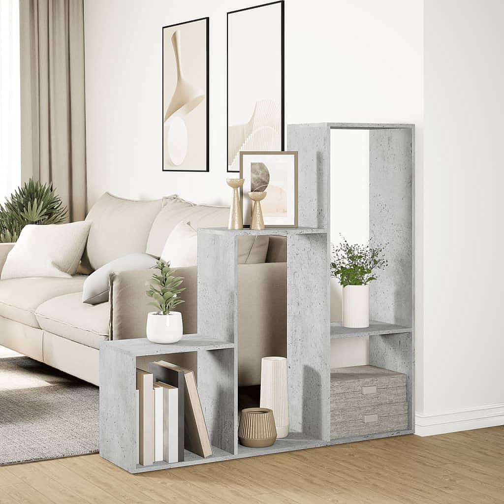 Librería divisora 3 niveles madera gris hormigón 123x29x123 cm