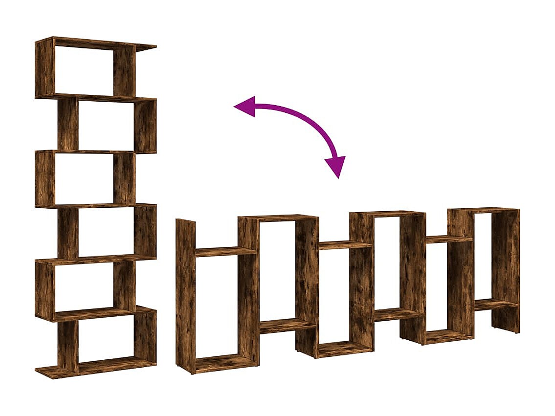 Librería divisora 6 niveles madera roble ahumado 70x24x193 cm
