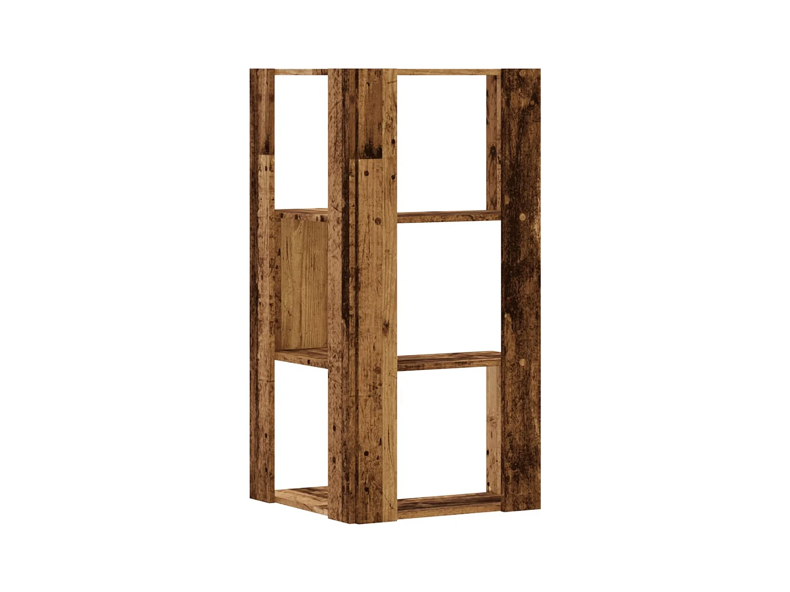 Librería esquinera de 3 niveles de madera reciclada y madera de ingeniería