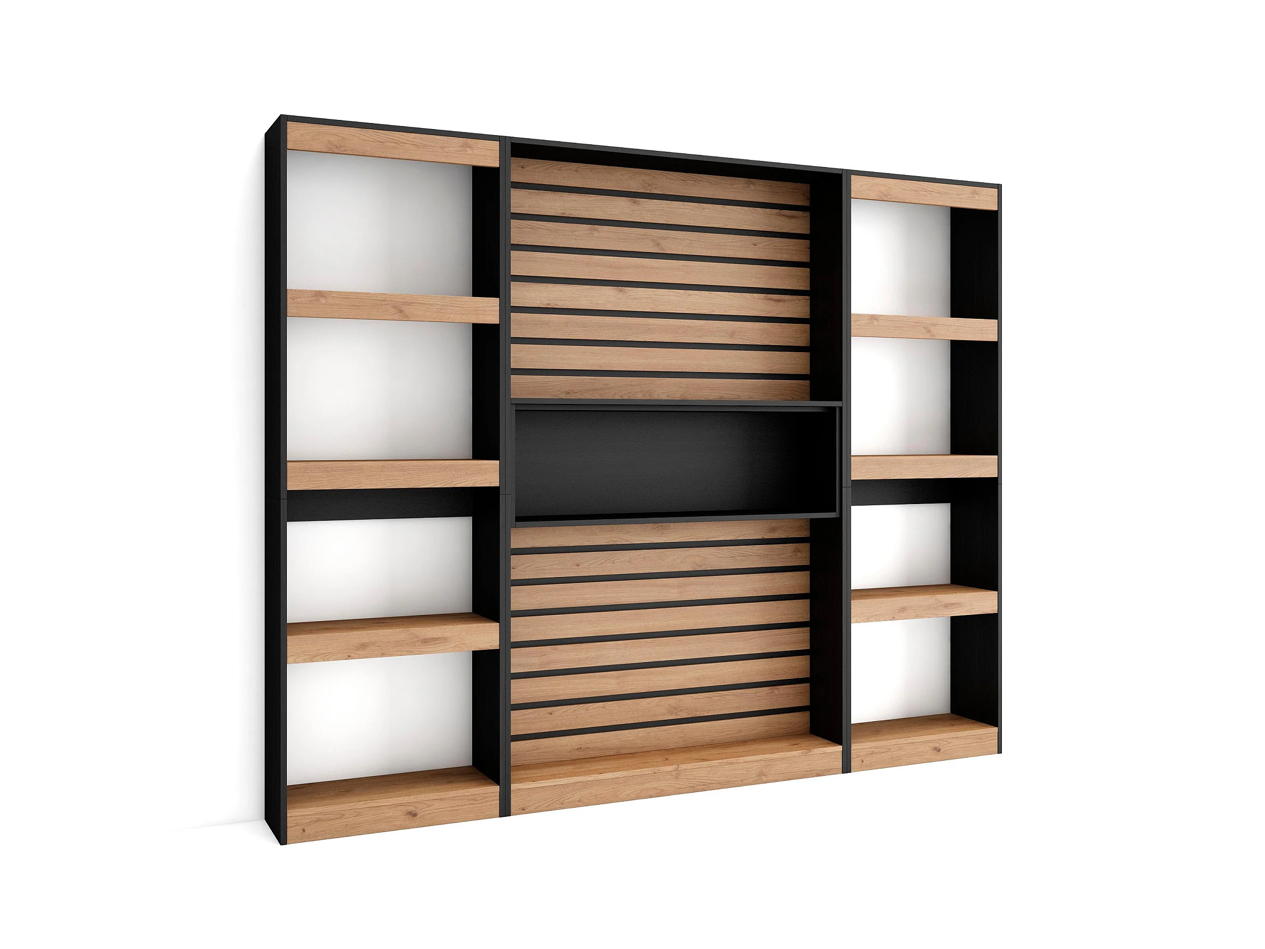 Librería estantería, 230x25x186cm, Salón - Comedor - Oficina, Con Almacenaje, Roble y negro