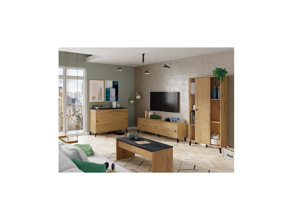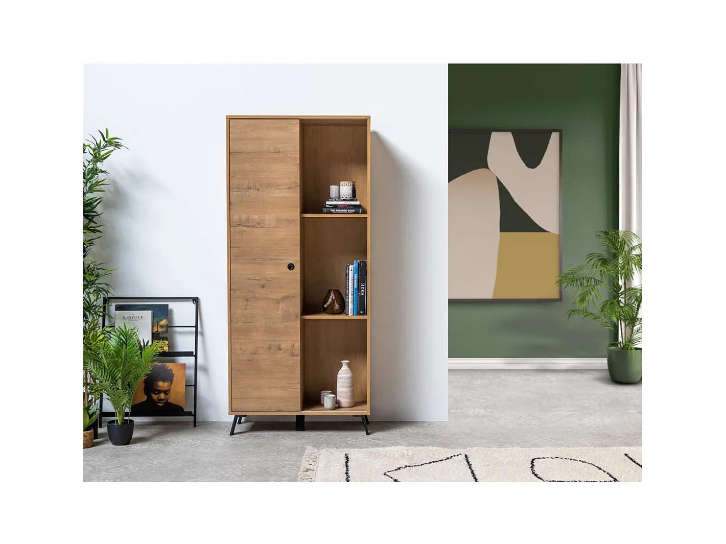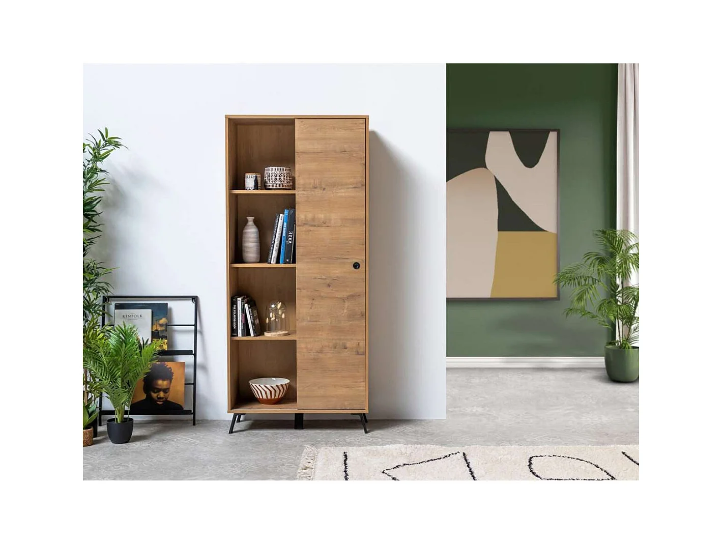 Librería Kamet con puerta corredera acabado roble gold, 180cm(alto) 80cm(ancho) 30cm(fond