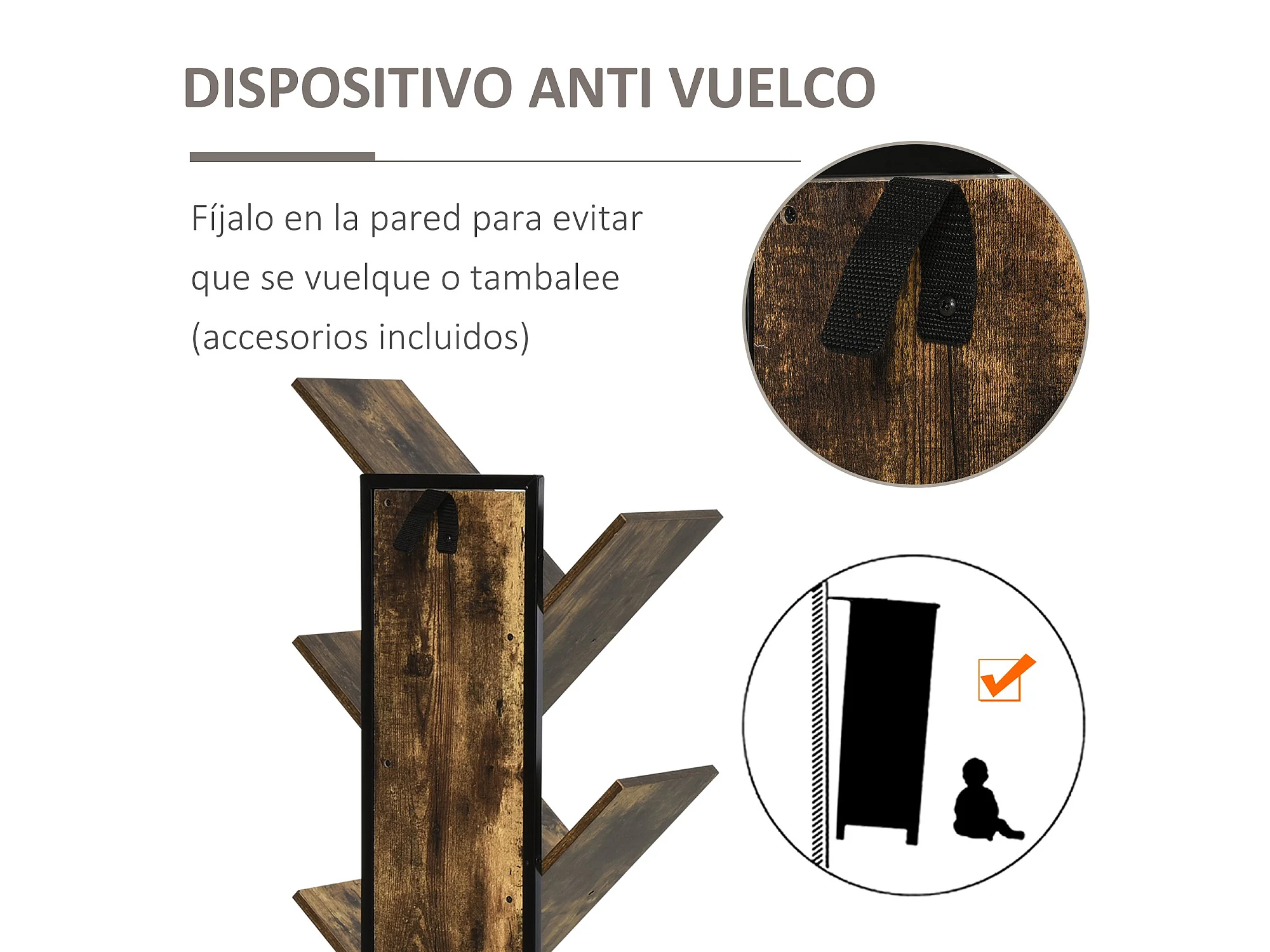 Librería en forma de árbol marrón rústico 50x28x142 cm HOMCOM
