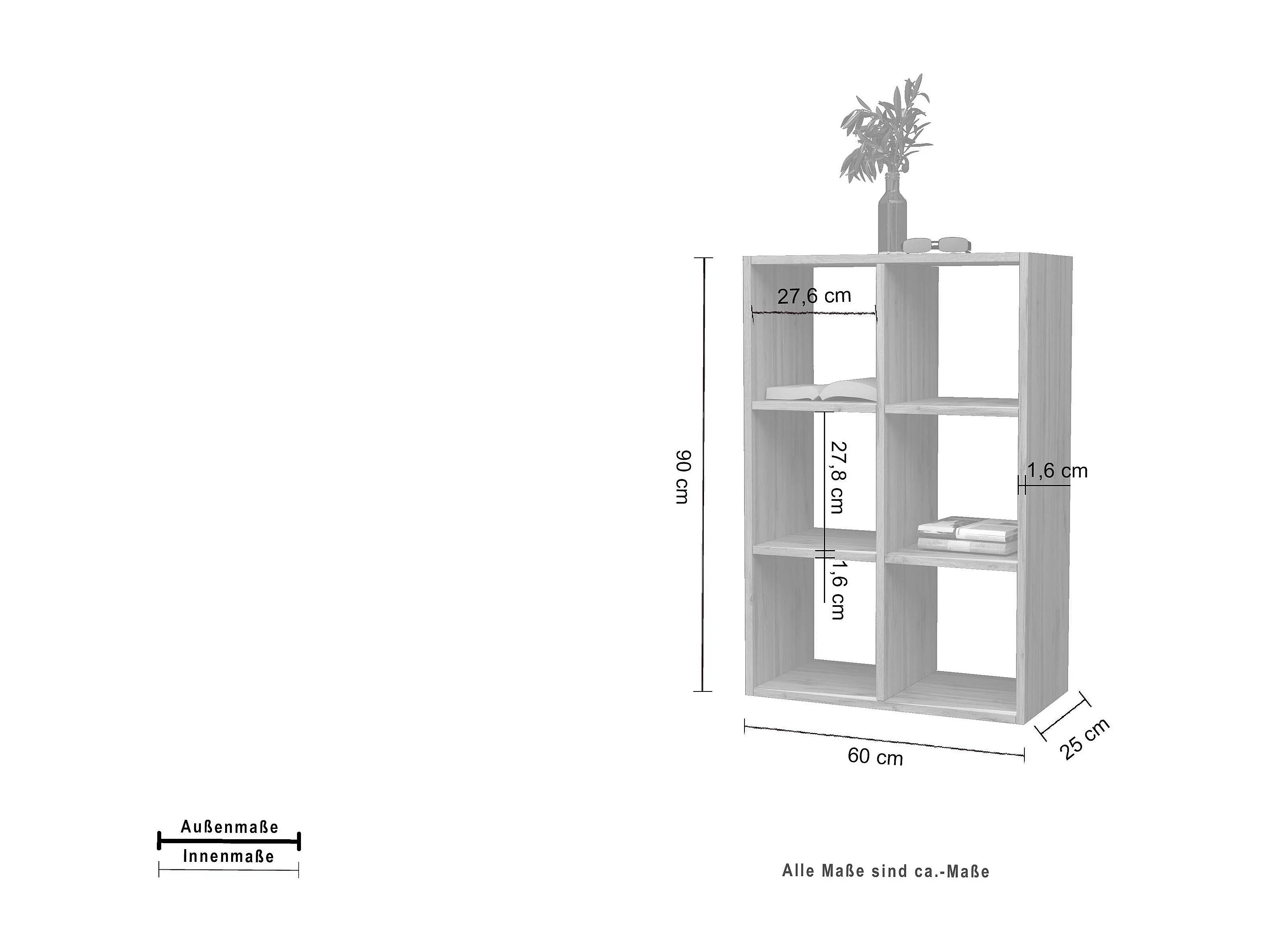 Librería mural moderna madera 6 estantes 60x90x25cm Roderik M