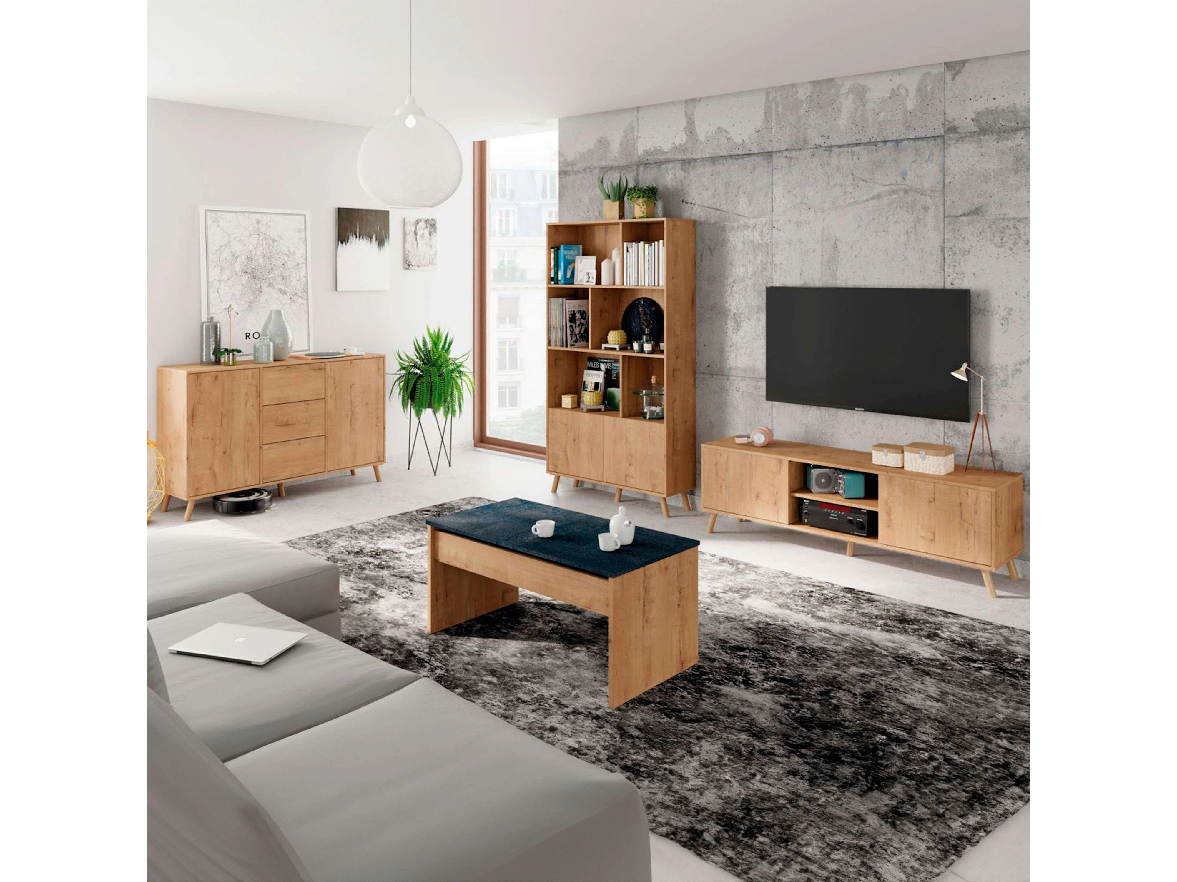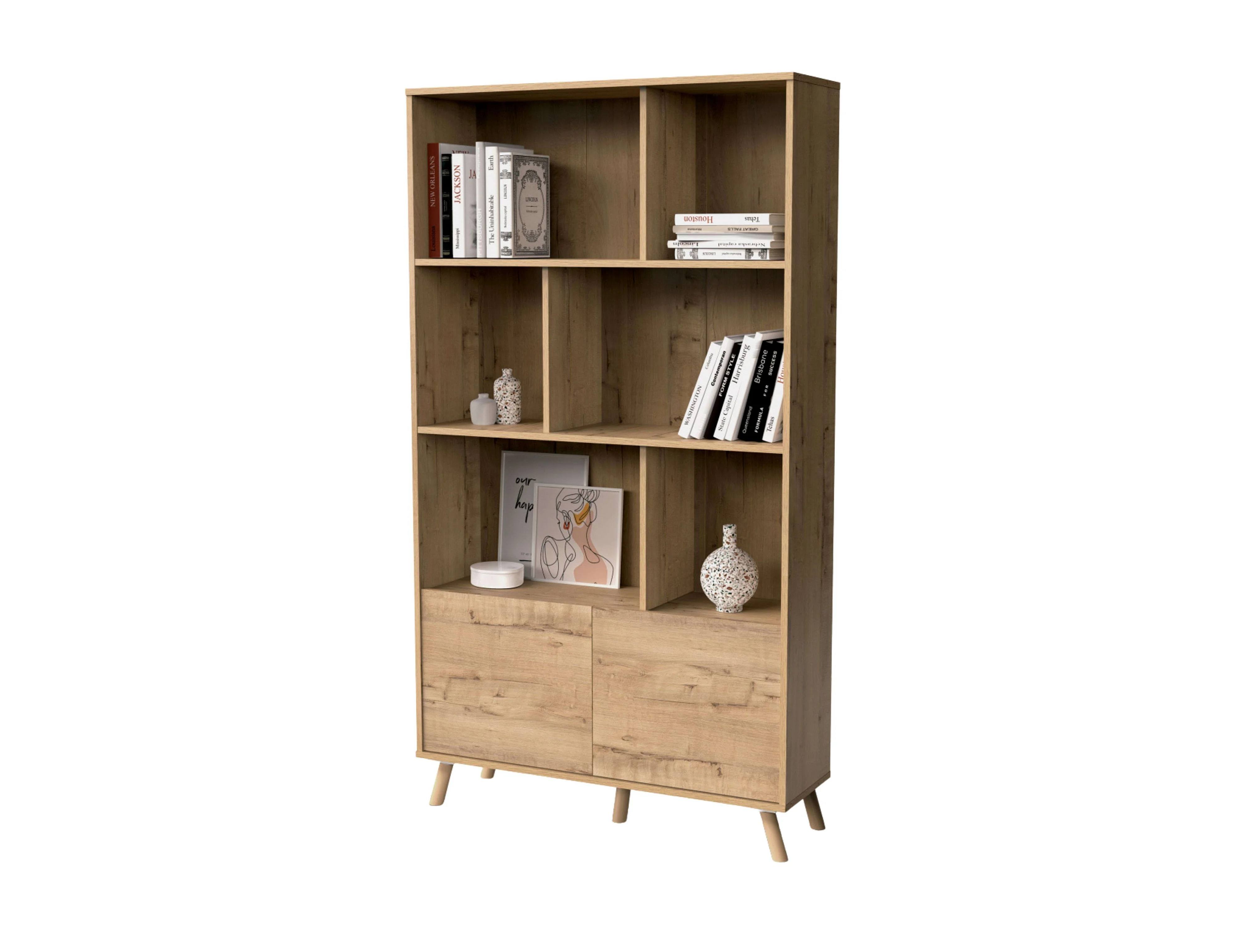 Librería Oslo 2 Puertas 6 Estantes Patas Roble Gold 100x180x30 cm