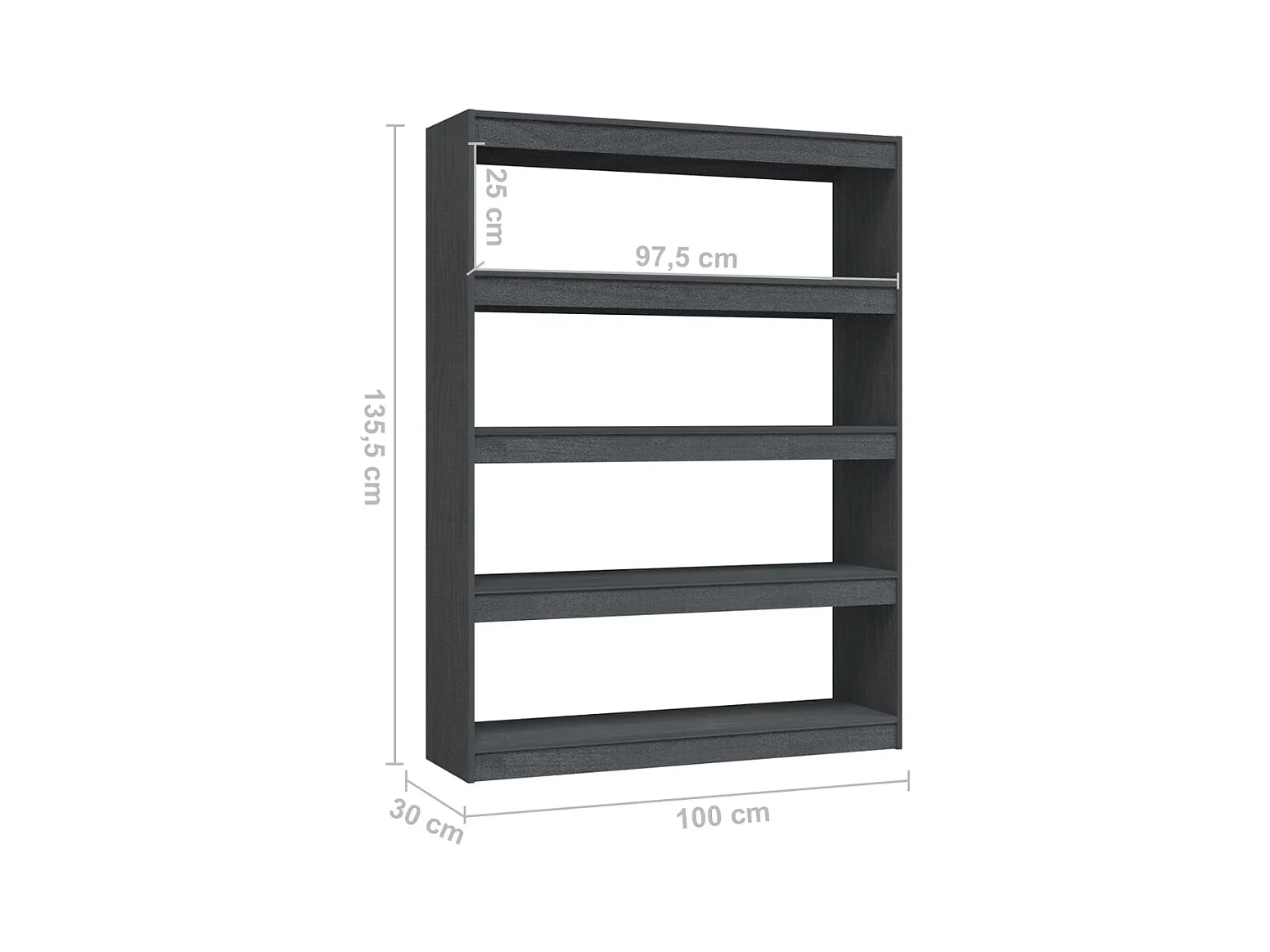 Librería/Separador de ambientes Gris 100x30x135,5cm Pino Macizo