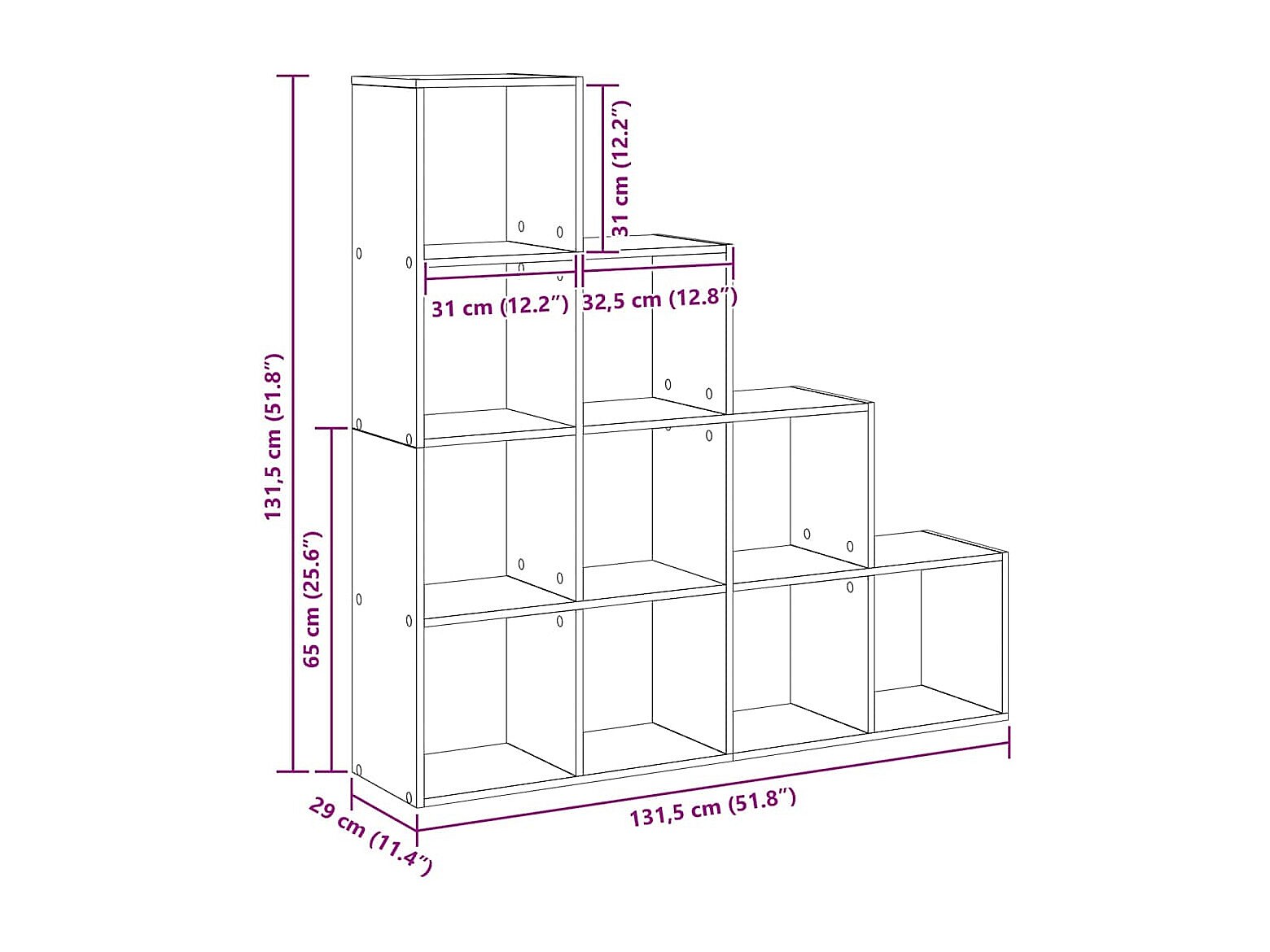 Librería divisora 3 niveles madera negro 123x29x123 cm