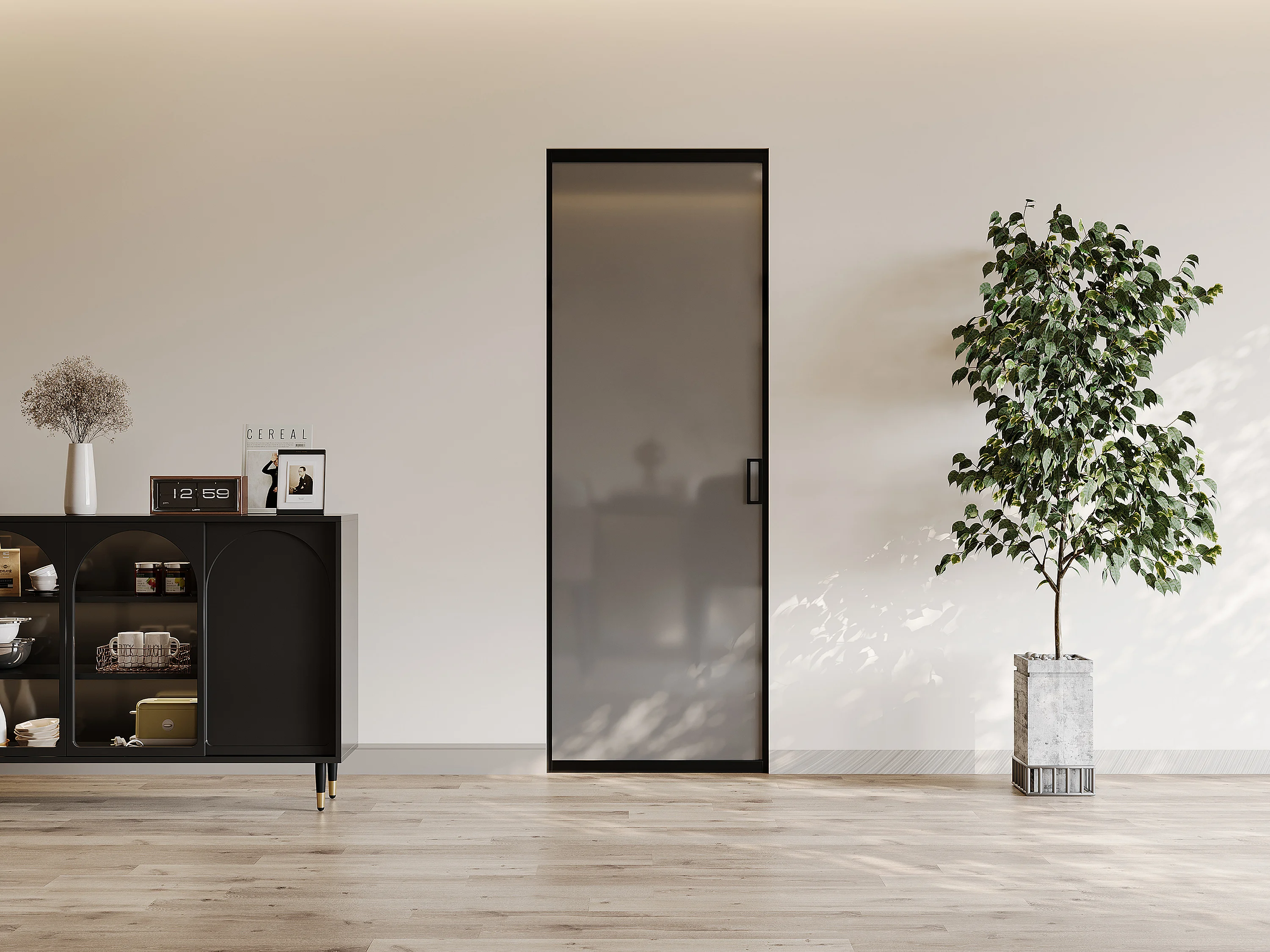 Puerta corredera empotrada - aluminio y cristal templado ahumado mate - Alt. 205 x L63 cm - LINCI II