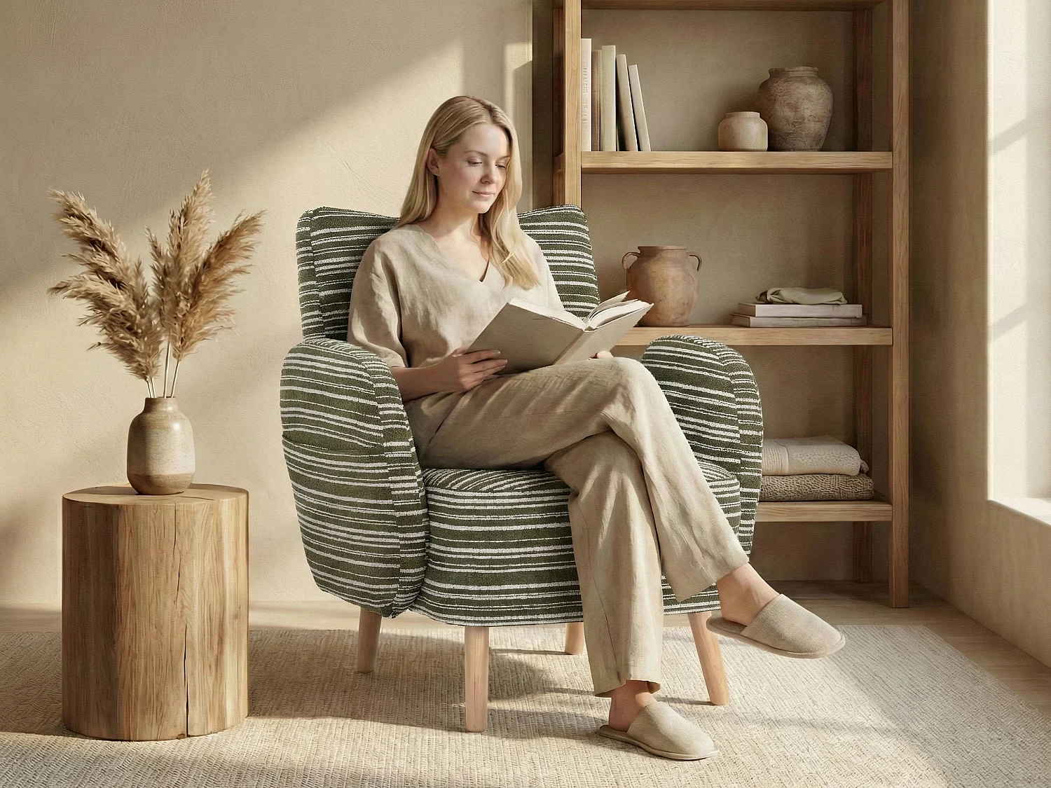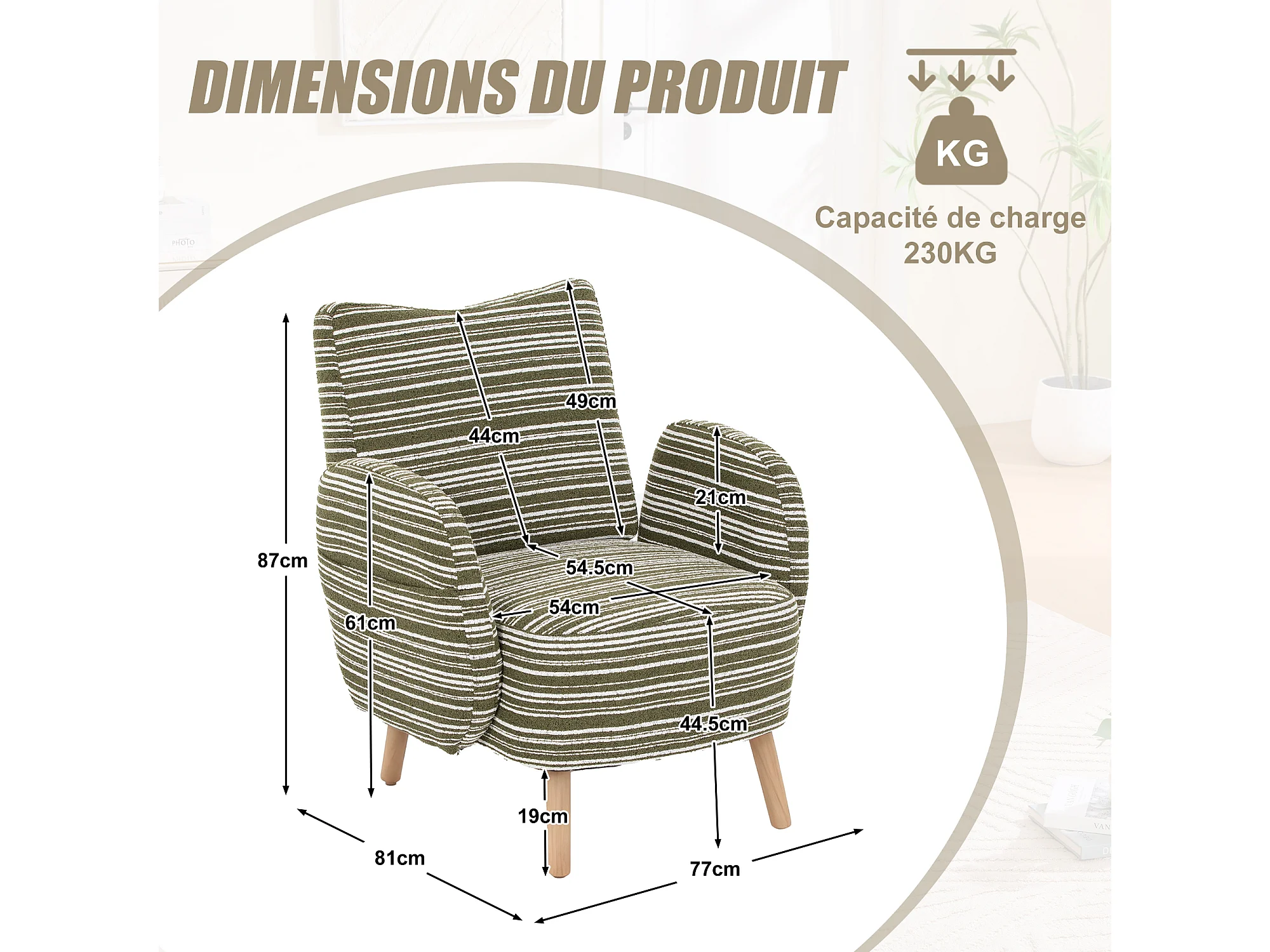 Línea 1.0 - Sillón Relax Bouclé con Reposabrazos con Bolsillos - Confort Ergonómico - Color Caqui - Para Decorar Cualquier Habitación