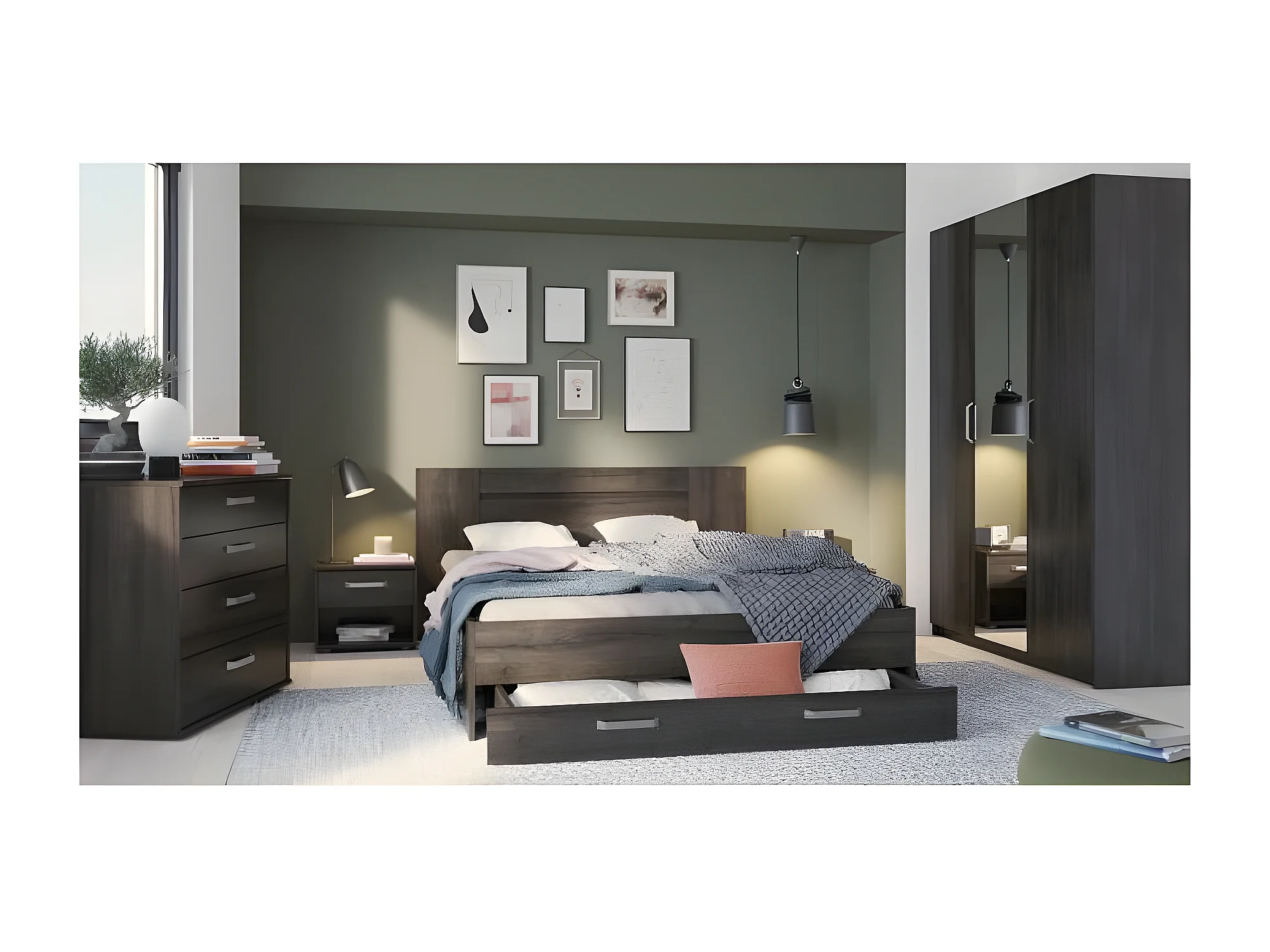 Lit adulte RICHMOND 160x200 cm - Décor chene Waterford - 1 Tiroir - L 180,20 x P 205,60 x H 79,40 cm -