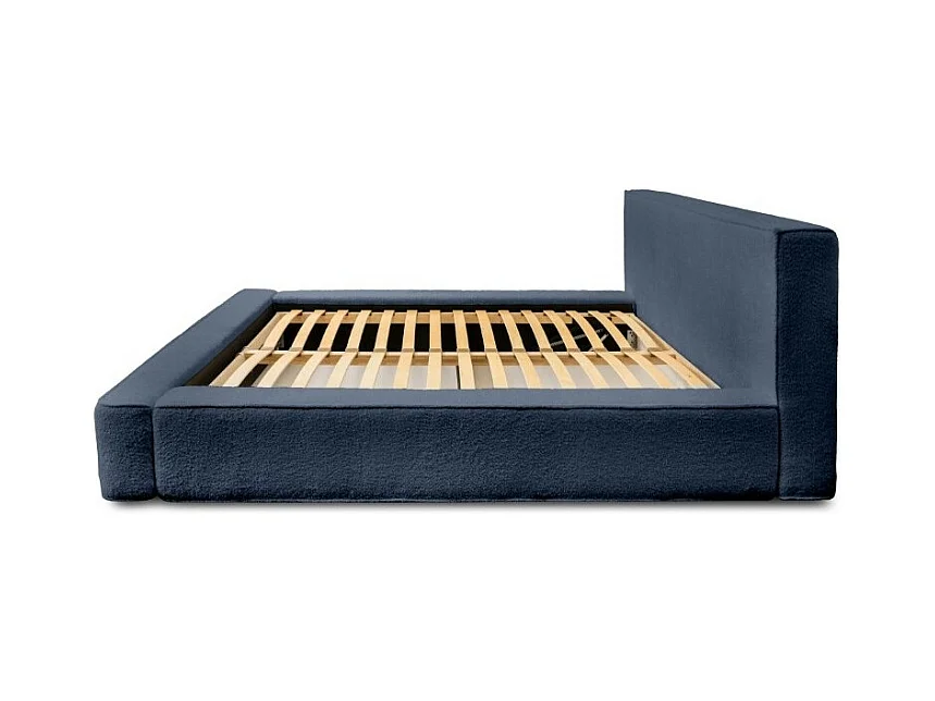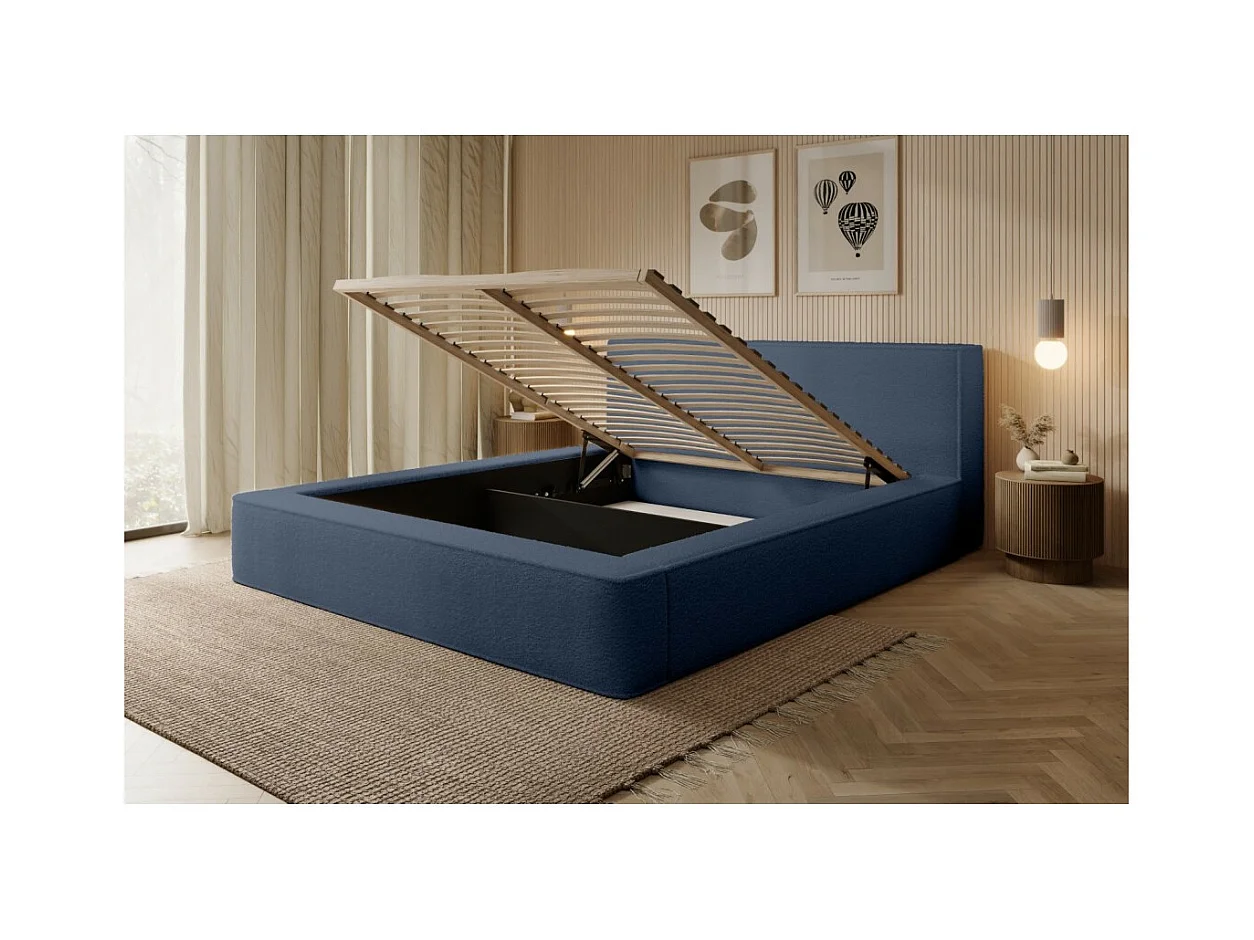 Cama con canapé VERNON – Tela chenilla buclé Carbón azul – 160x200 cm – Somier elevable – Diseño de alta gama