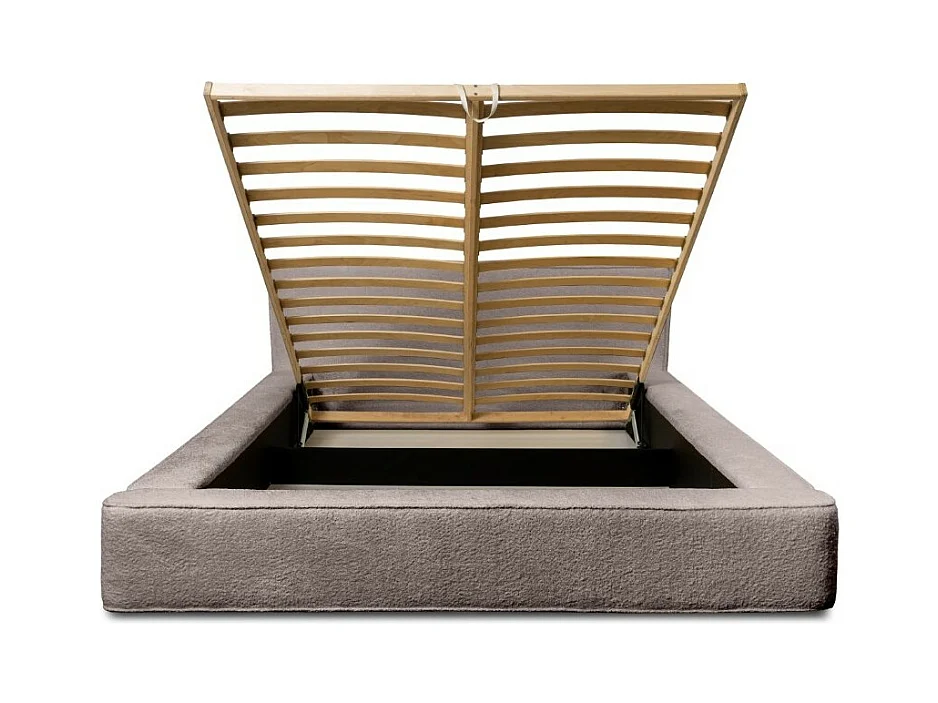 Cama contenedor 140x200 con cabecero inclinado con lamas de roble Ankel