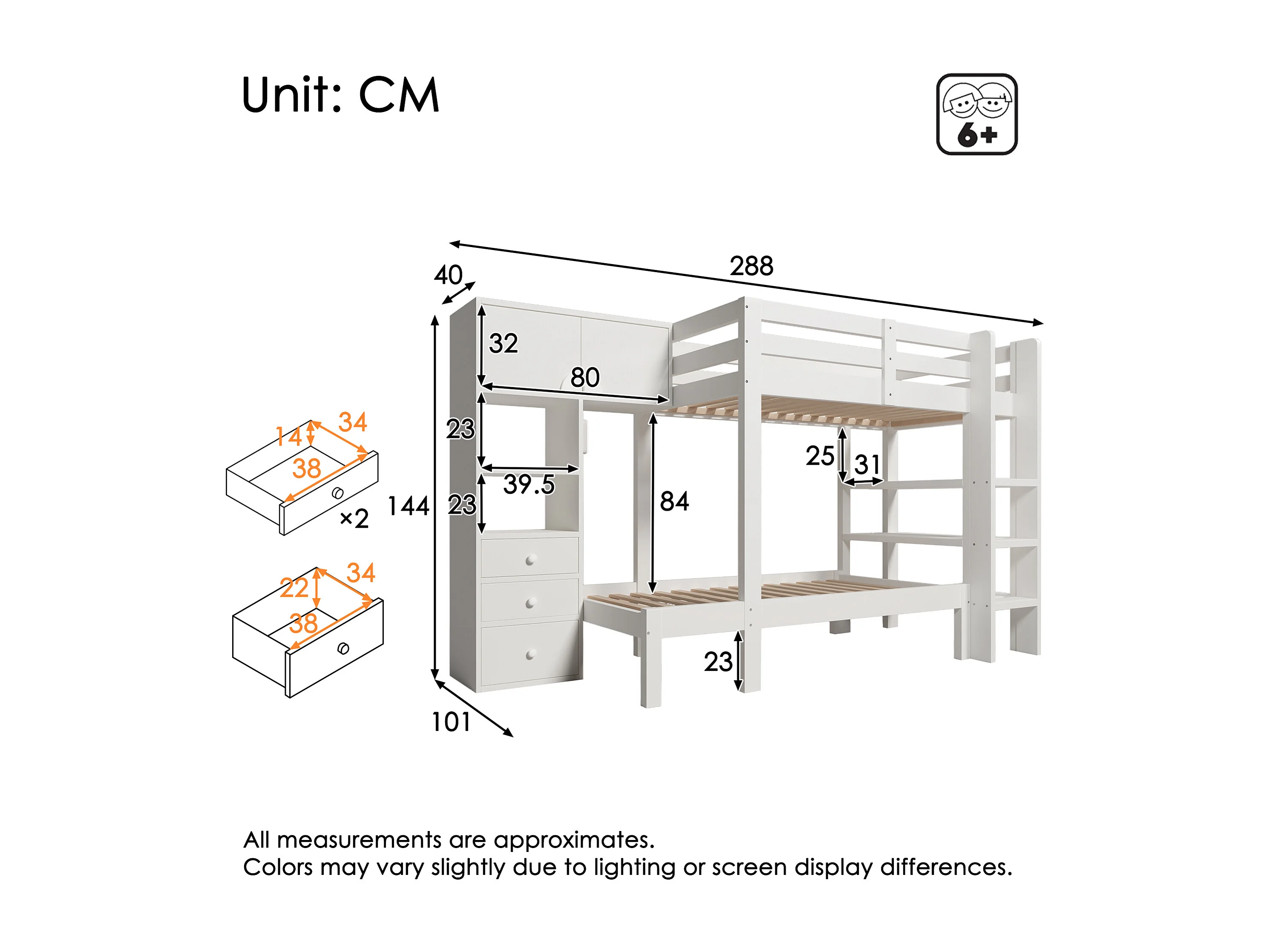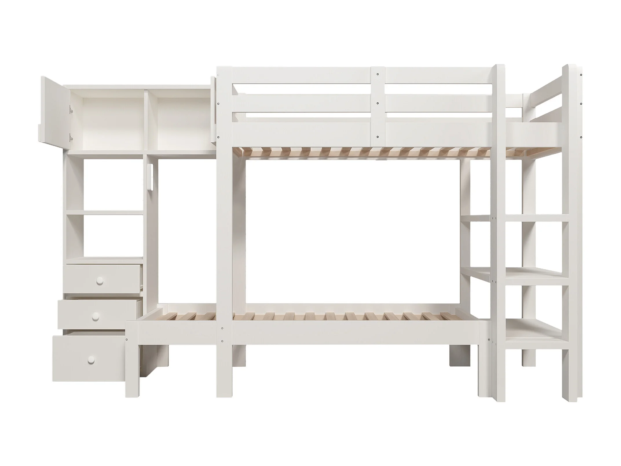 Litera 100x200cm ahorro de espacio con escalera lateral y amplios compartimentos madera y metal Blanco (Sin colchón)