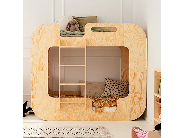 Litera 90x190 con escalera a la izquierda y somier Nadège Madera