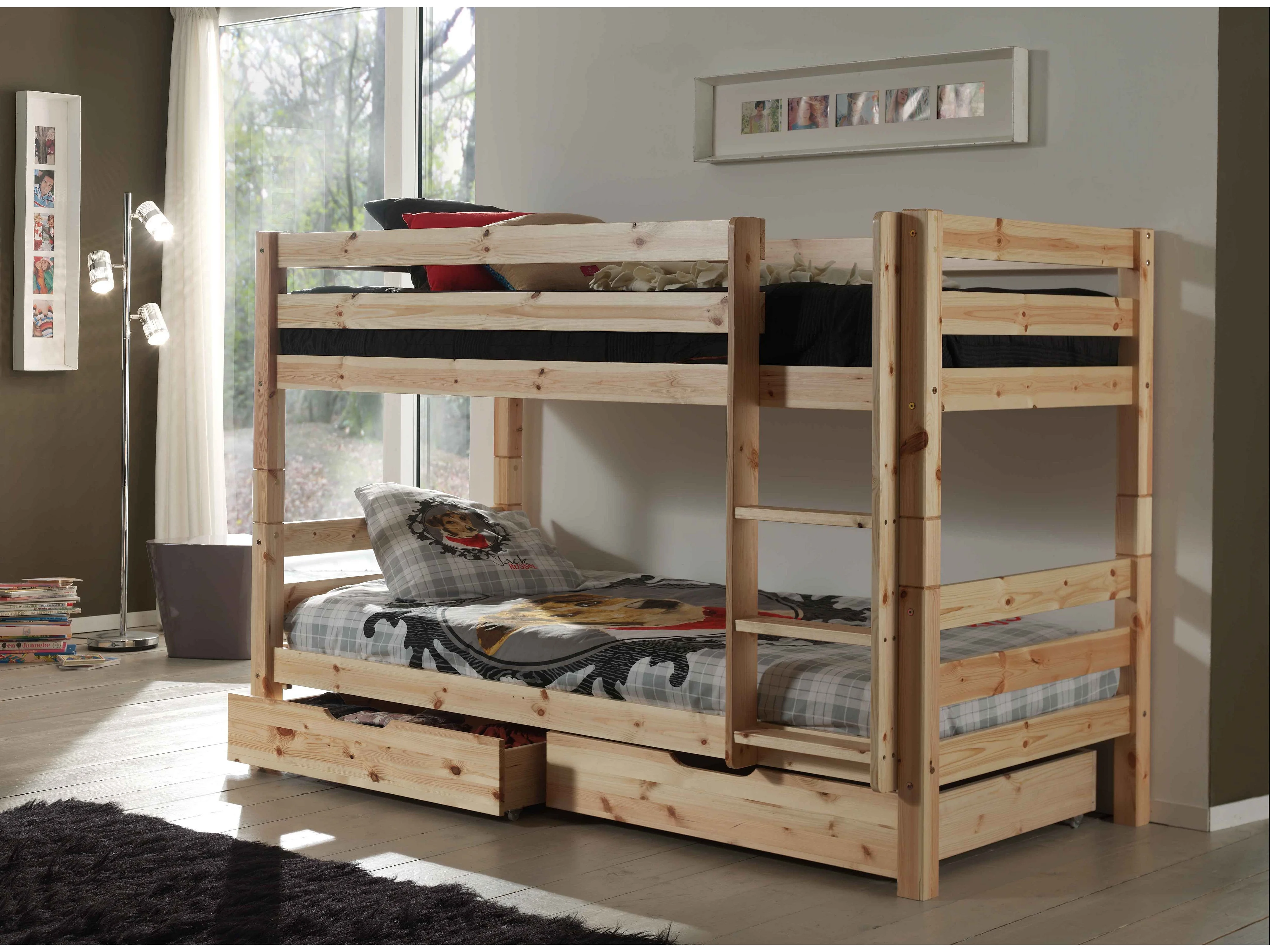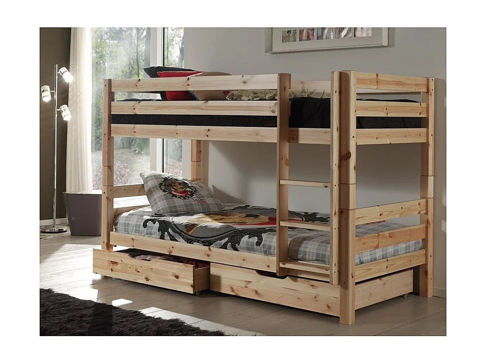 Litera 90x200 cm con 2 cajones pino macizo claro Pino Al. 140 cm