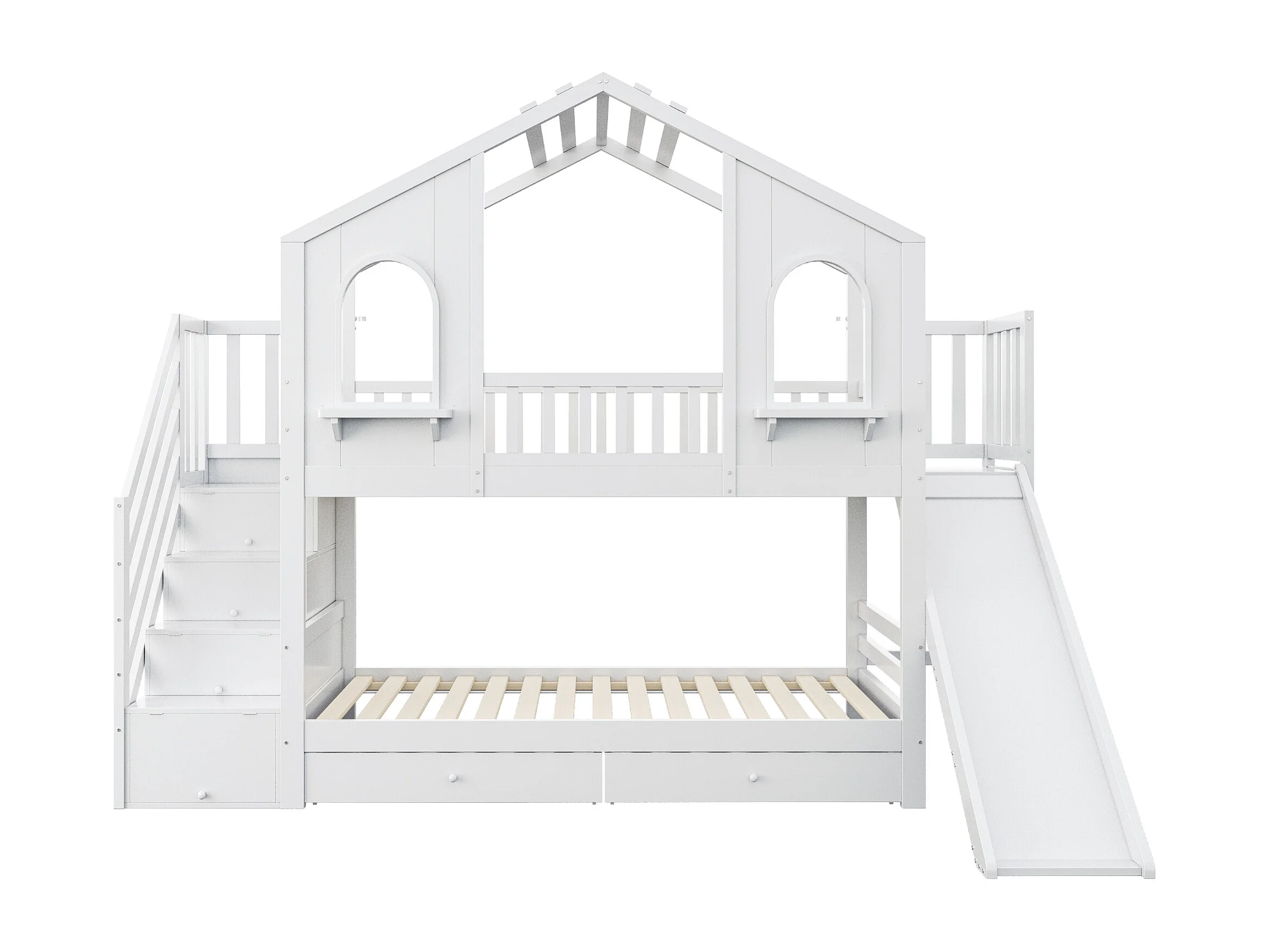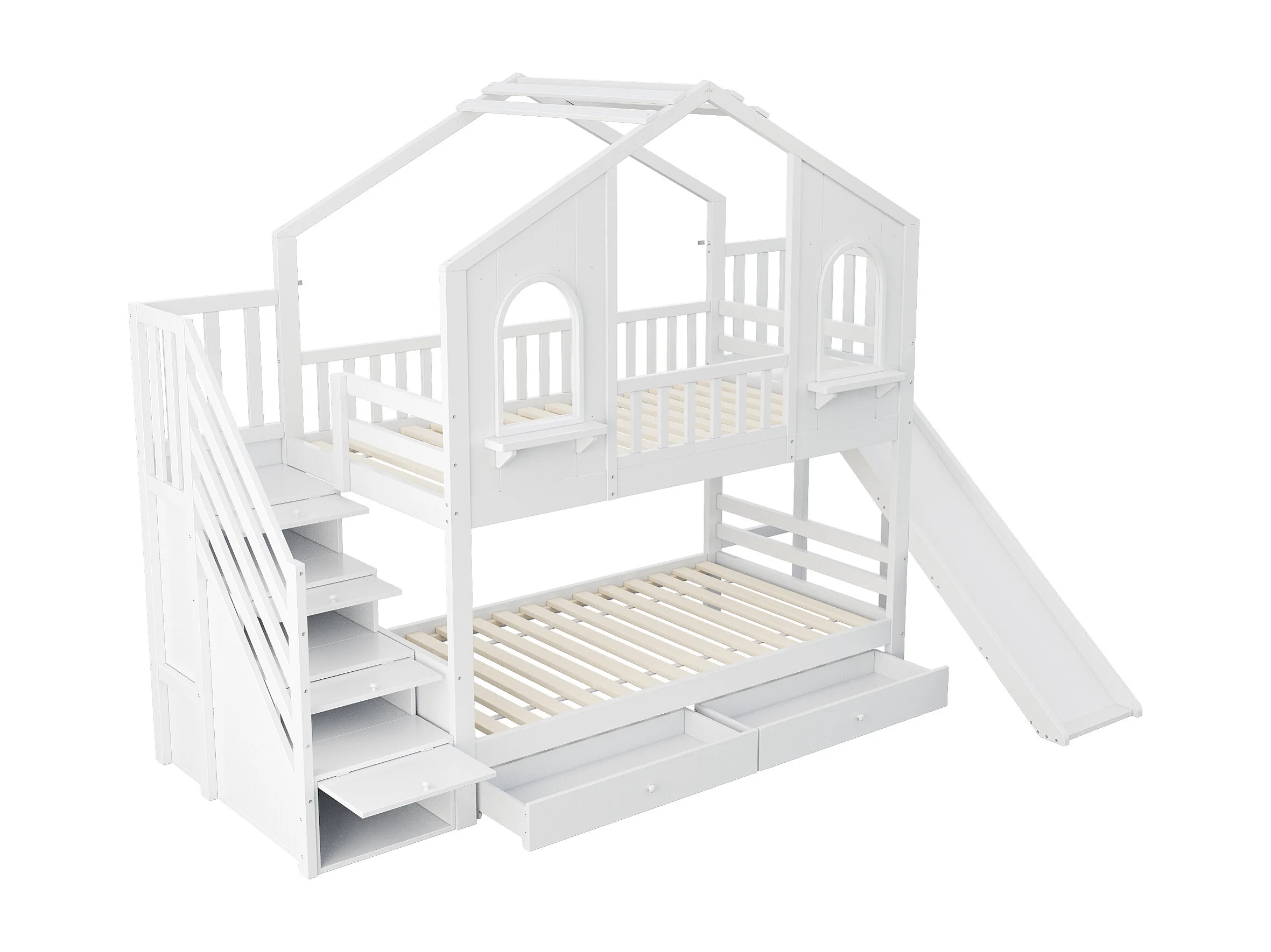 Litera 90x200cm Cajones amplios y escalera segura con puerta almacenamiento madera blanca (Sin colchón)