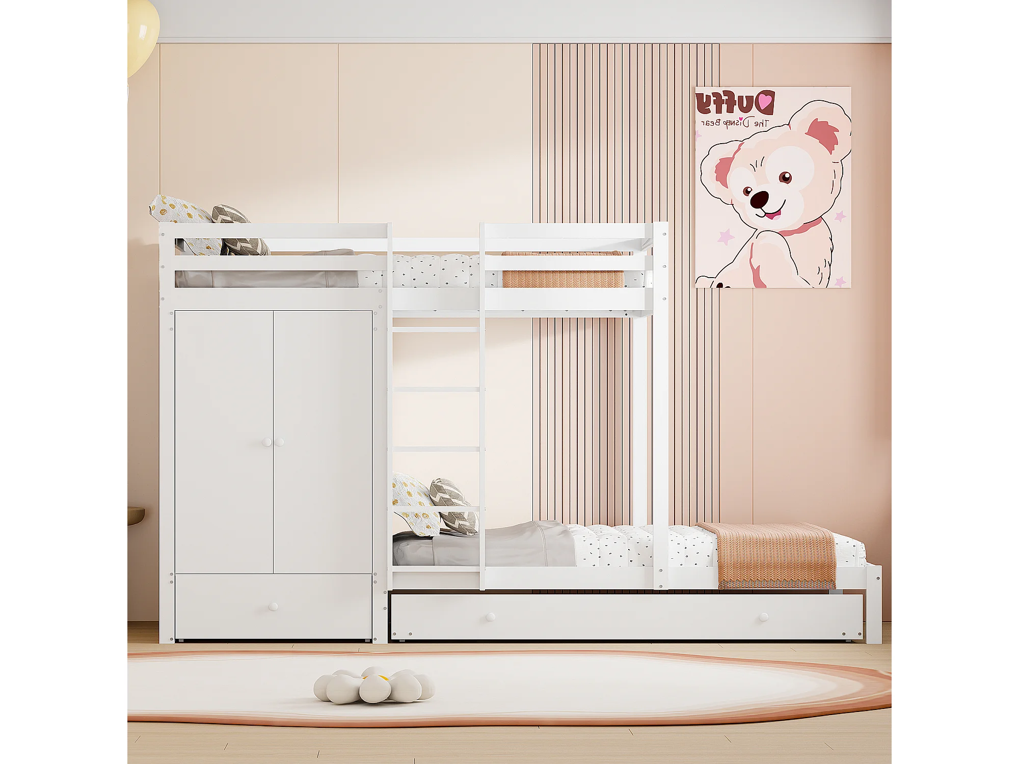 Litera 90x200cm cama para niños ahro de espacio con almacenamiento madera dmitio blanco (Sin colchón)