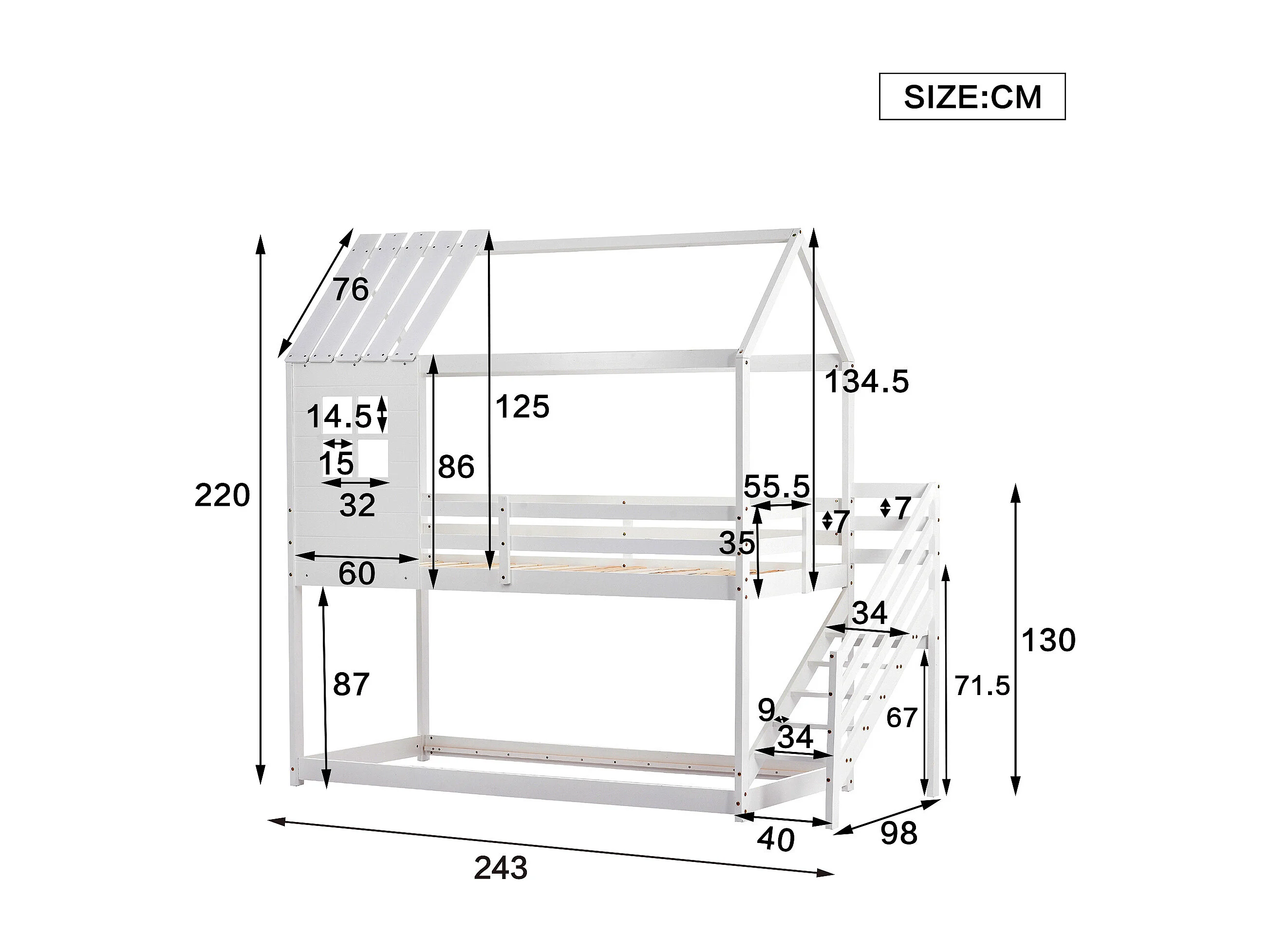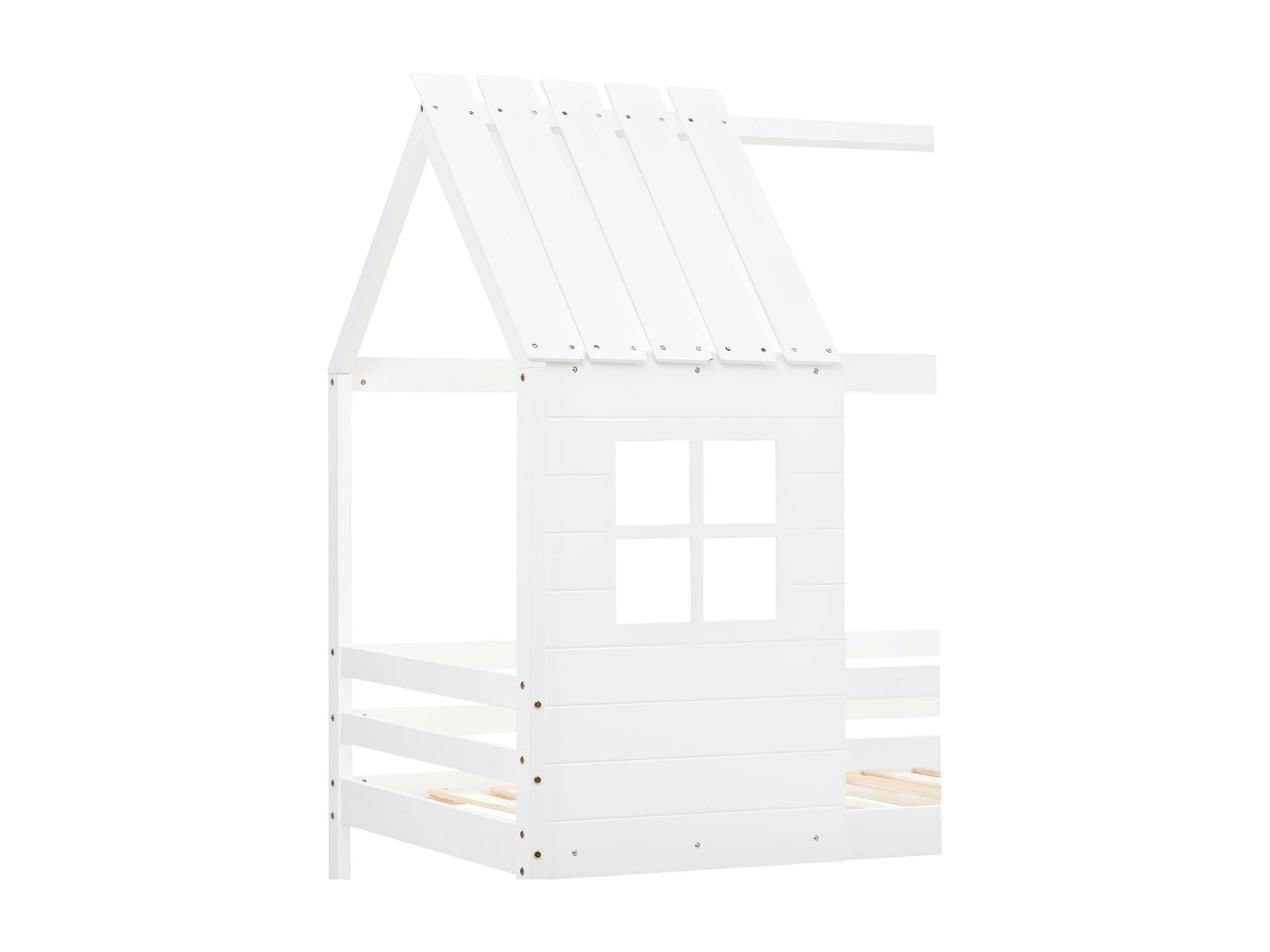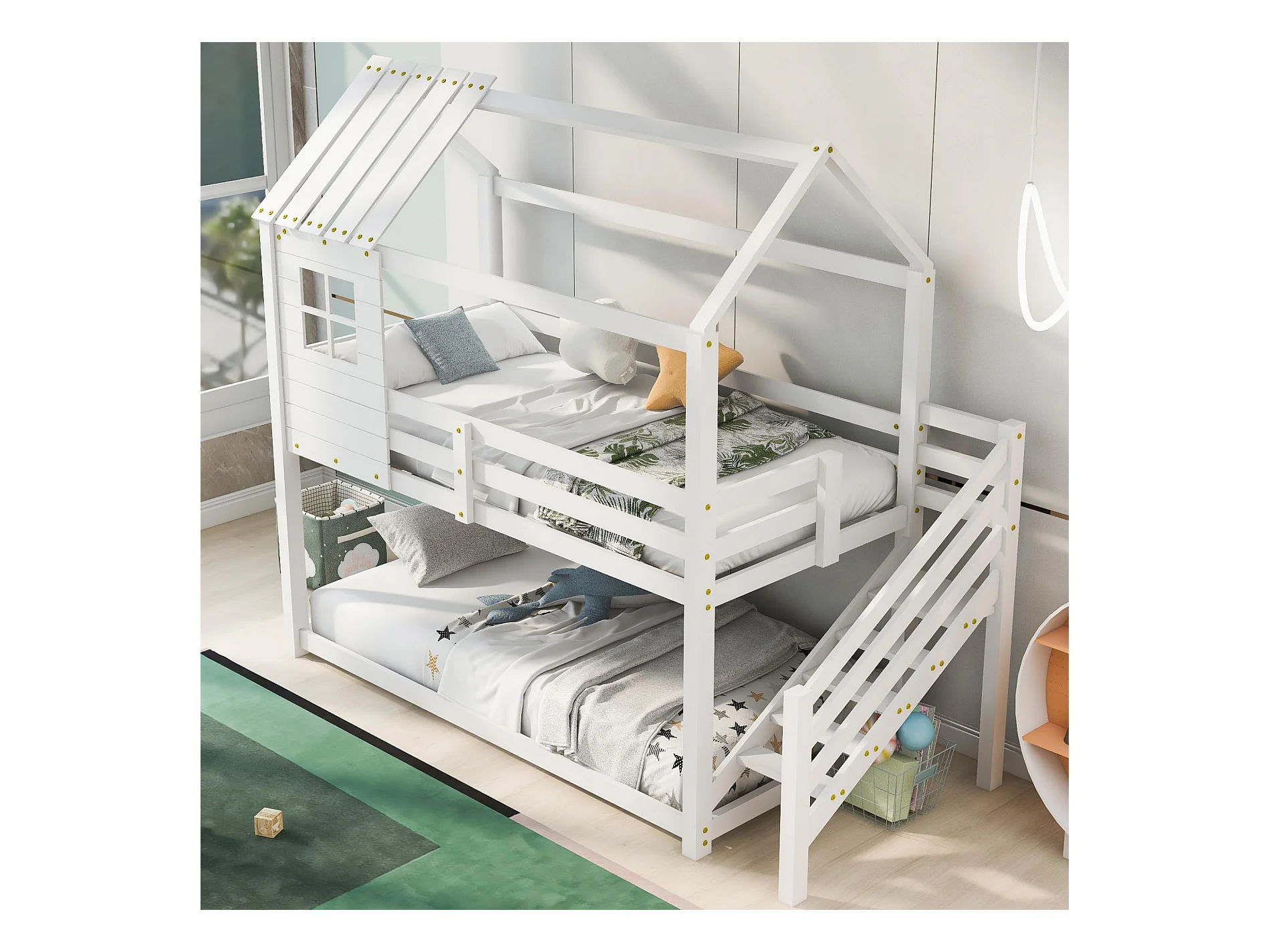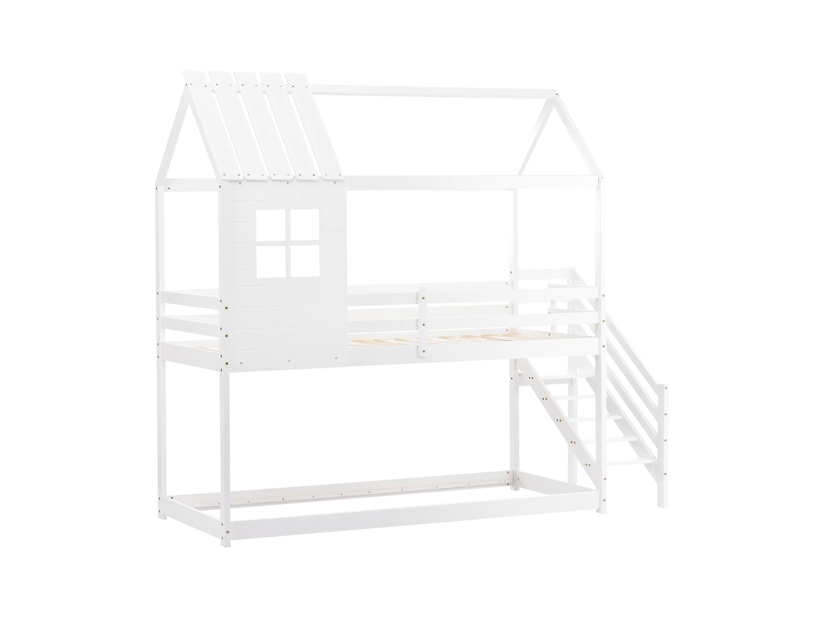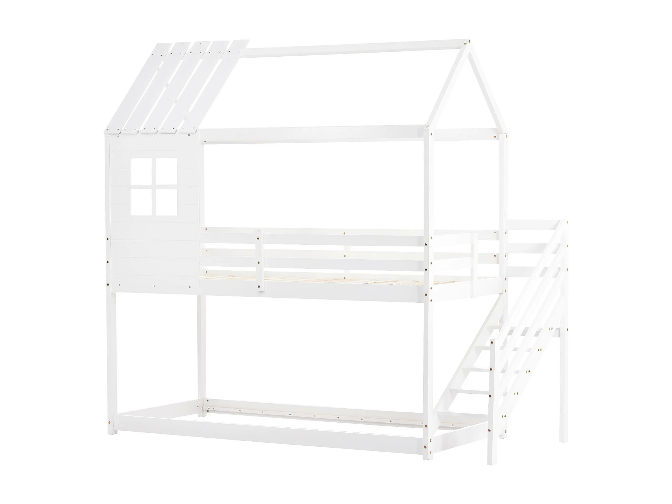Litera tipo cabaña de madera de pino - 90x200 cm - con escaleras - Blanco