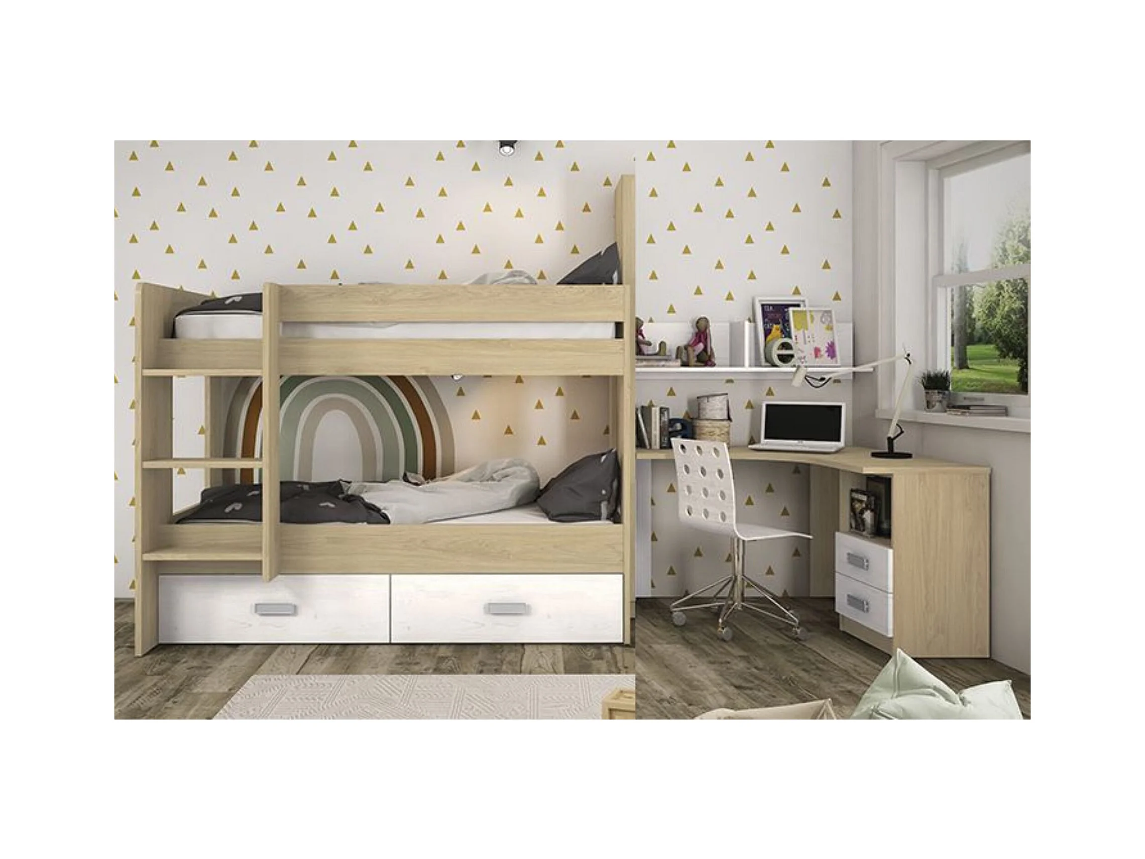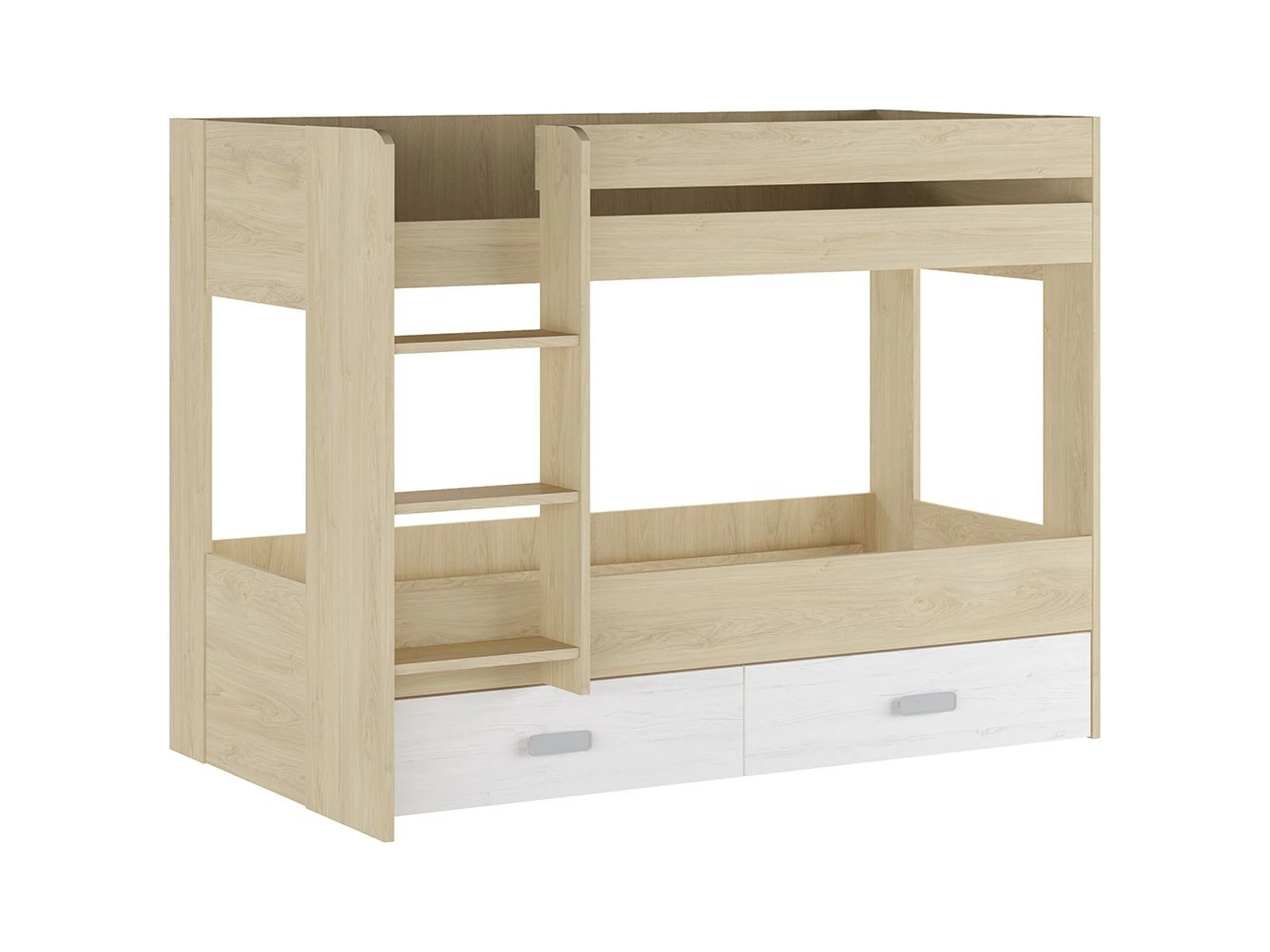 Litera con Cajonera en Blanco y Natural - 95.6 cm (Largo) x 195.4 cm (Ancho) x 146.6 cm (Alto) | Alta Calidad y Resistencia