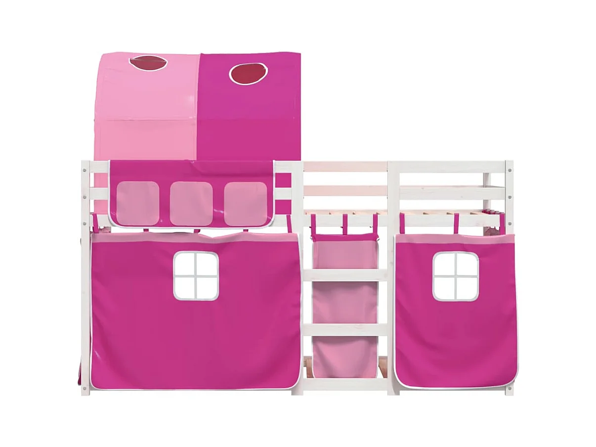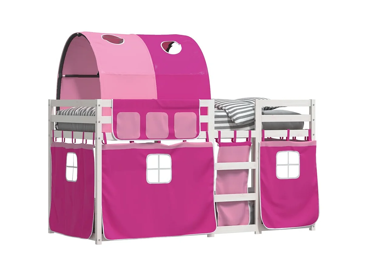 Litera con cortinas madera maciza de pino rosa 80x200 cm ES117737