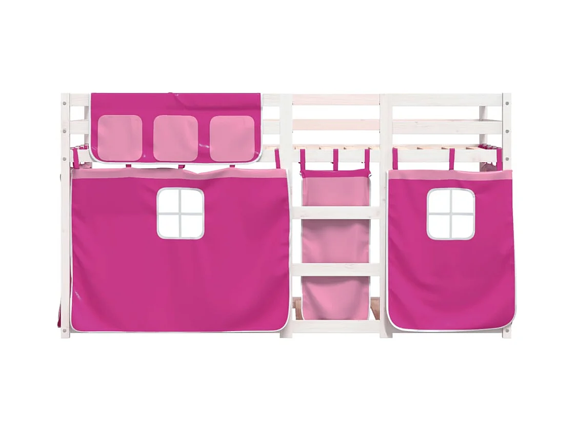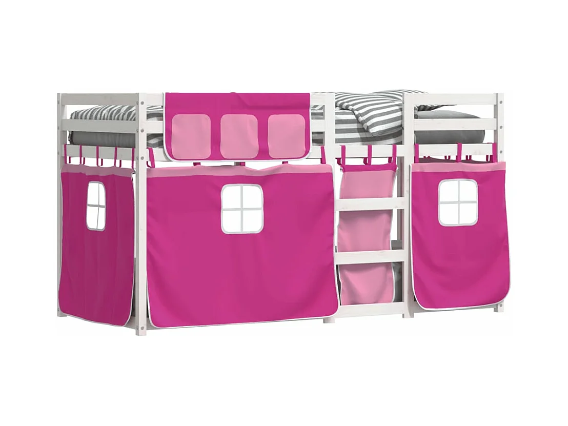 Litera con cortinas madera maciza de pino rosa 80x200 cm ES122802