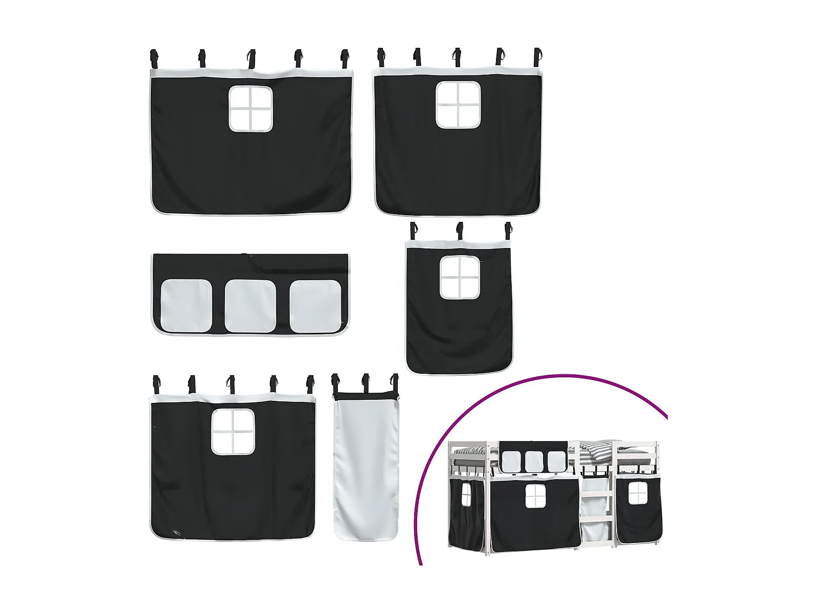 Litera con cortinas madera maciza pino blanco y negro 90x190 cm SHL44993