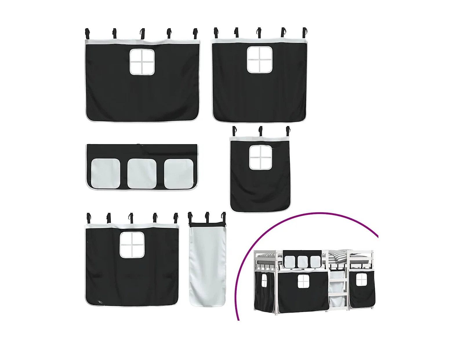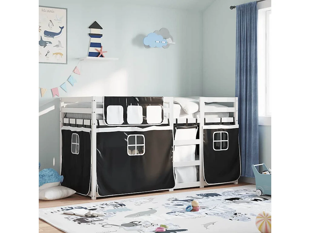 Litera con tobogán y cortinas blanco y negro 80x200 cm