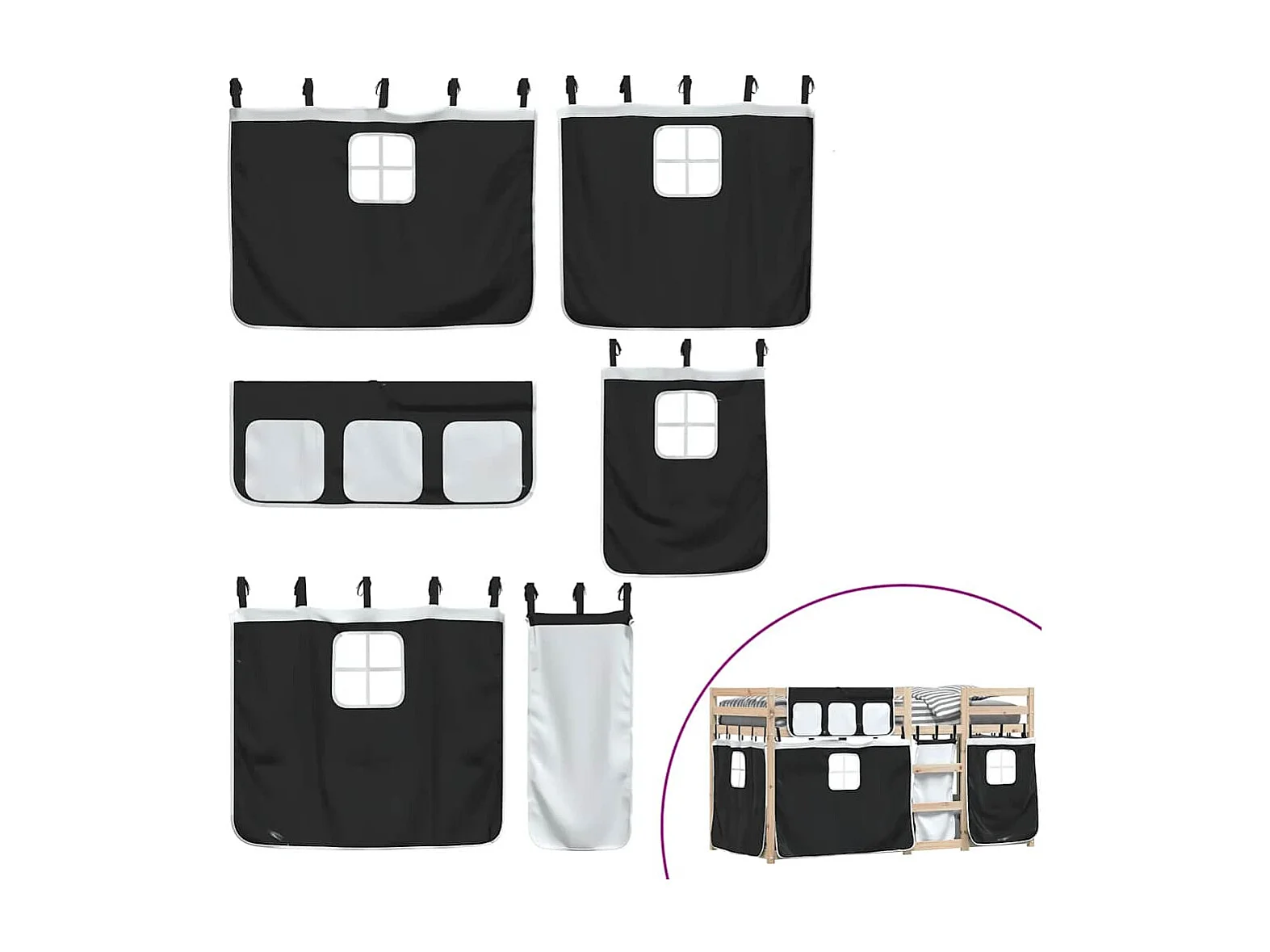 Litera con tobogán y cortinas blanco y negro 80x200 cm