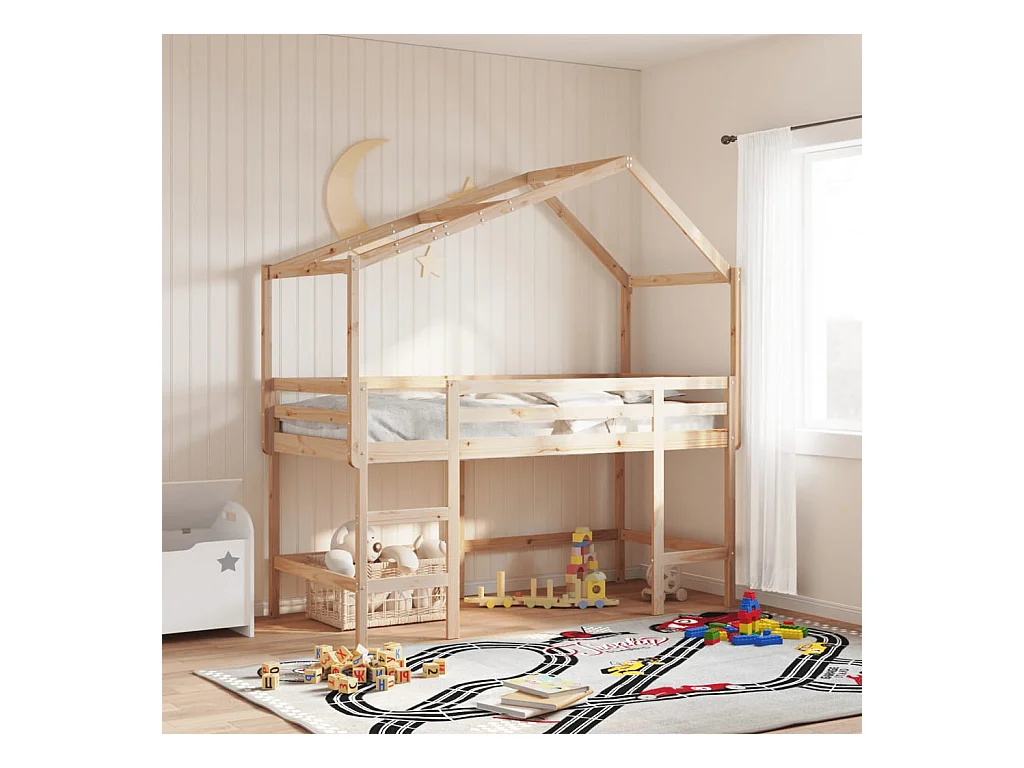 Estructura de cama infantil forma de casa sin colchón de pino