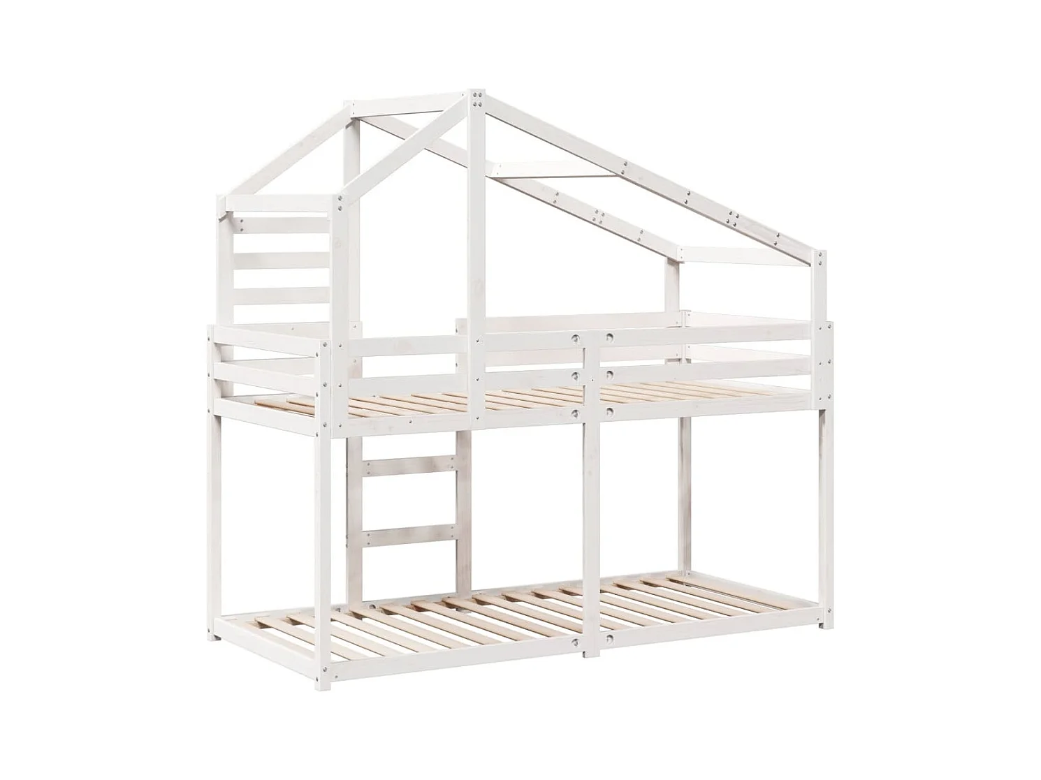 Cama litera con techo madera maciza de pino blanco 90x200 cm