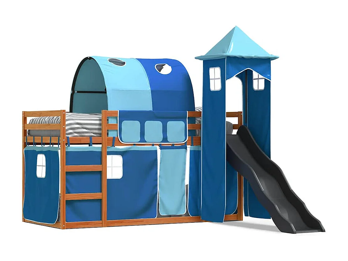 Litera con tobogán y cortinas azul 90x200 cm ES763552