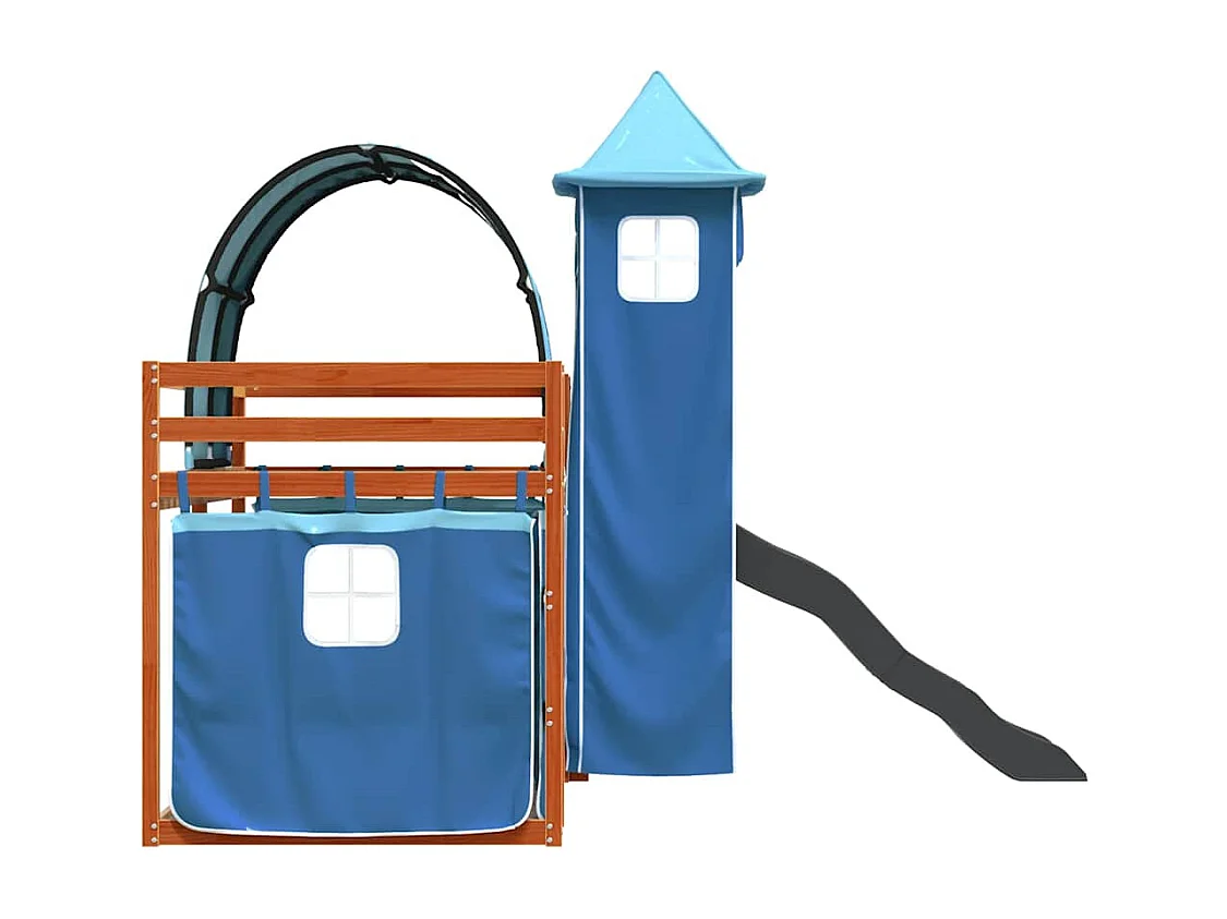 Litera con tobogán y cortinas azul 90x200 cm ES319533