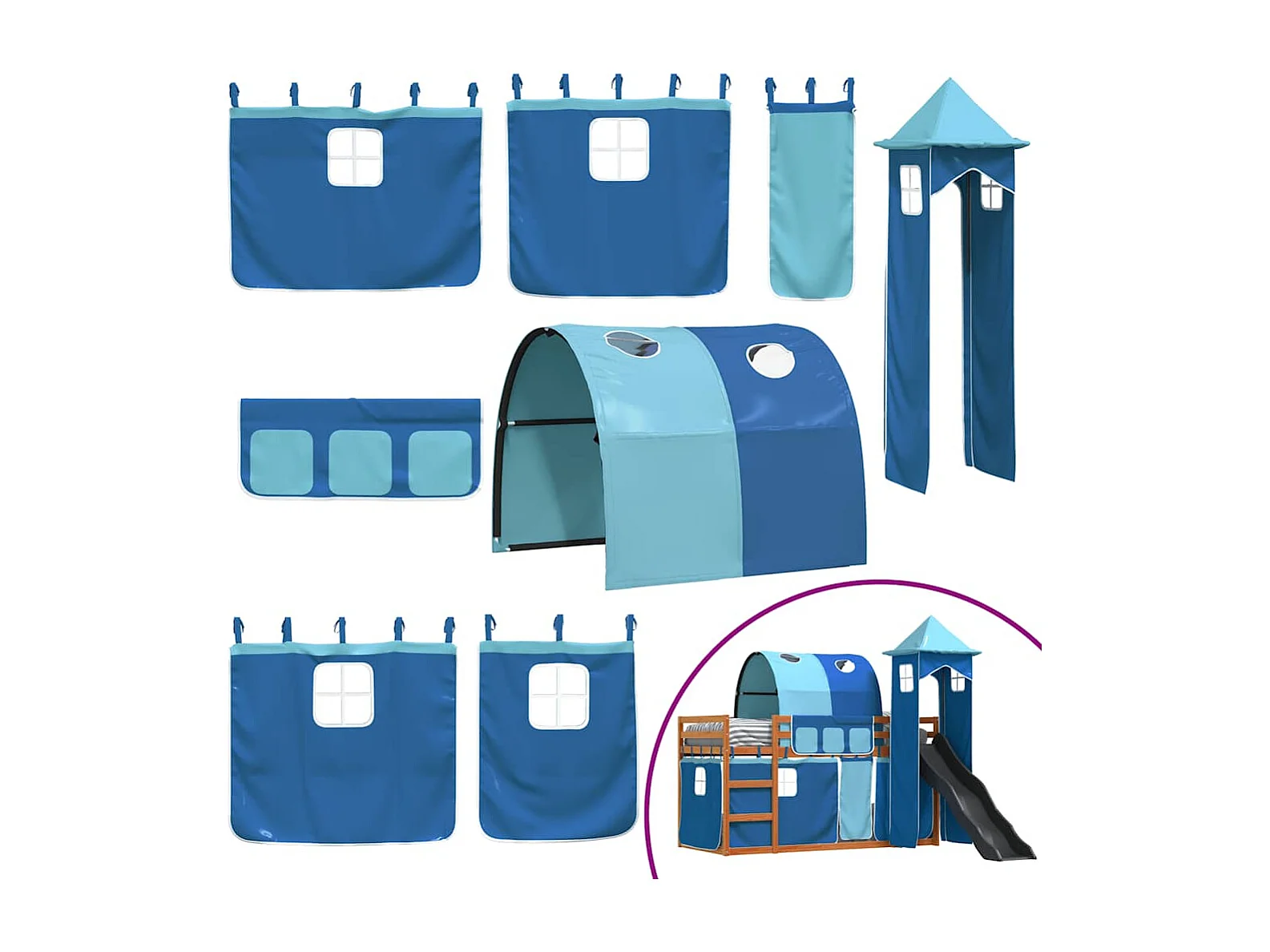 Litera con tobogán y cortinas azul 90x200 cm ES303890