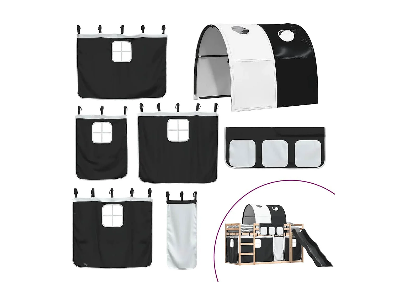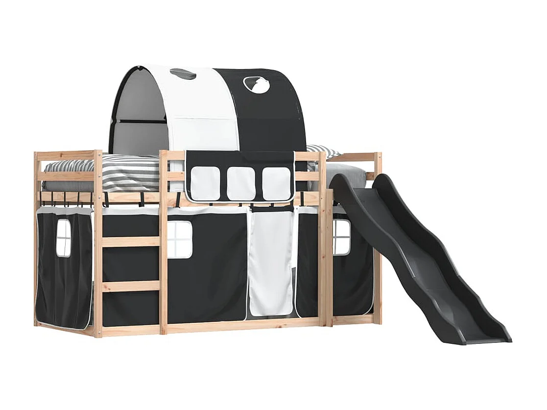 Litera con tobogán y cortinas blanco y negro 80x200 cm ES687616