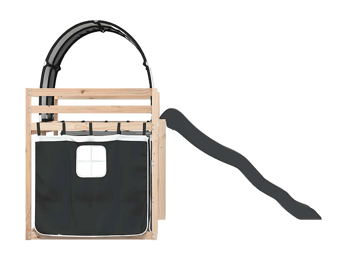 Litera con tobogán y cortinas blanco y negro 80x200 cm ES587668