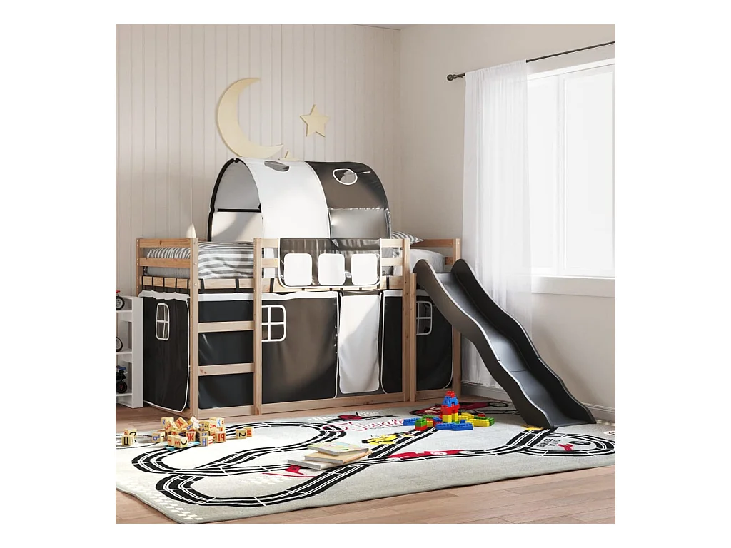 Litera con tobogán y cortinas blanco y negro 90x190 cm ES685416