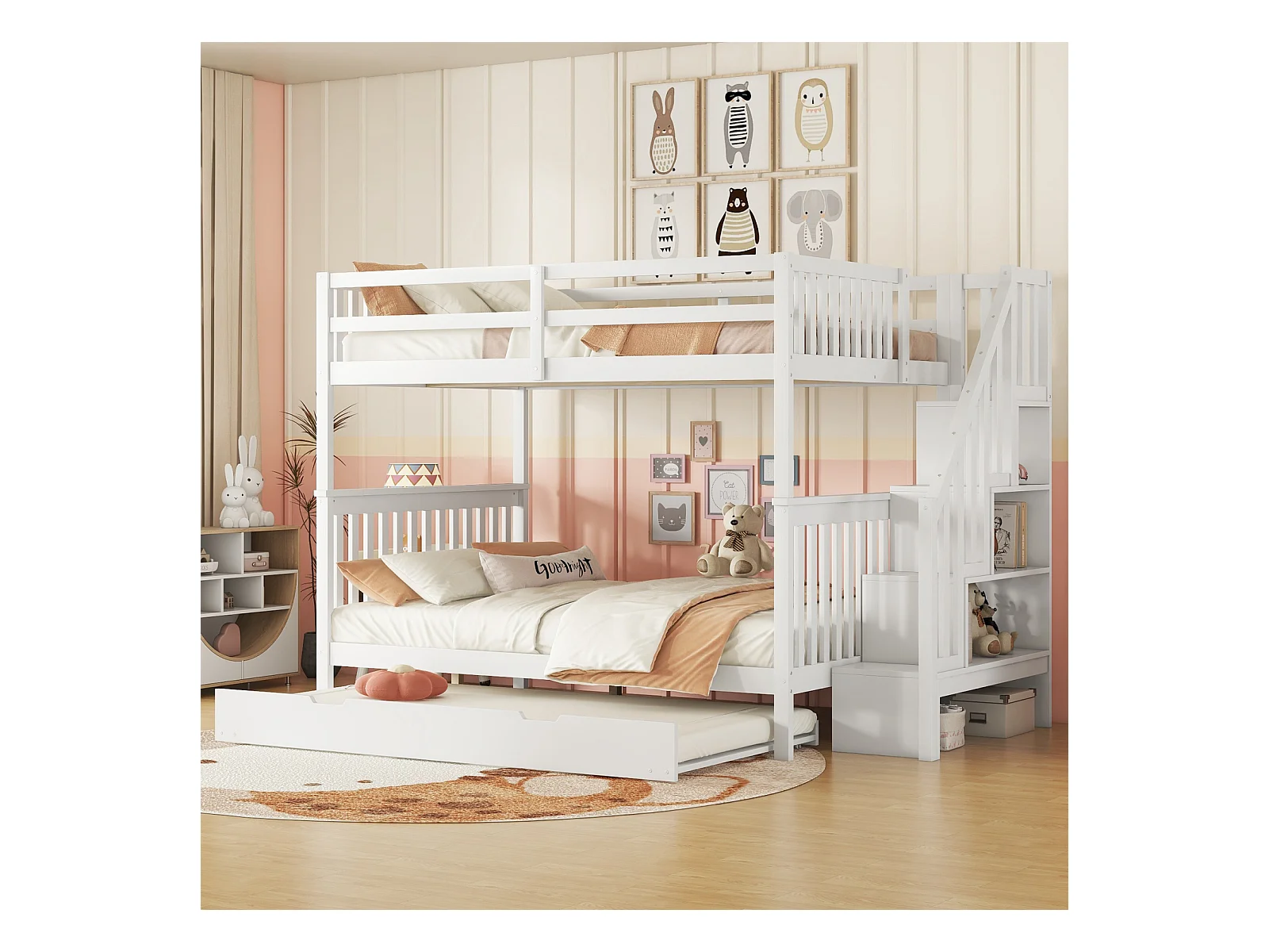 Litera triple madera maciza de pino blanca 140x200/70x140 cm