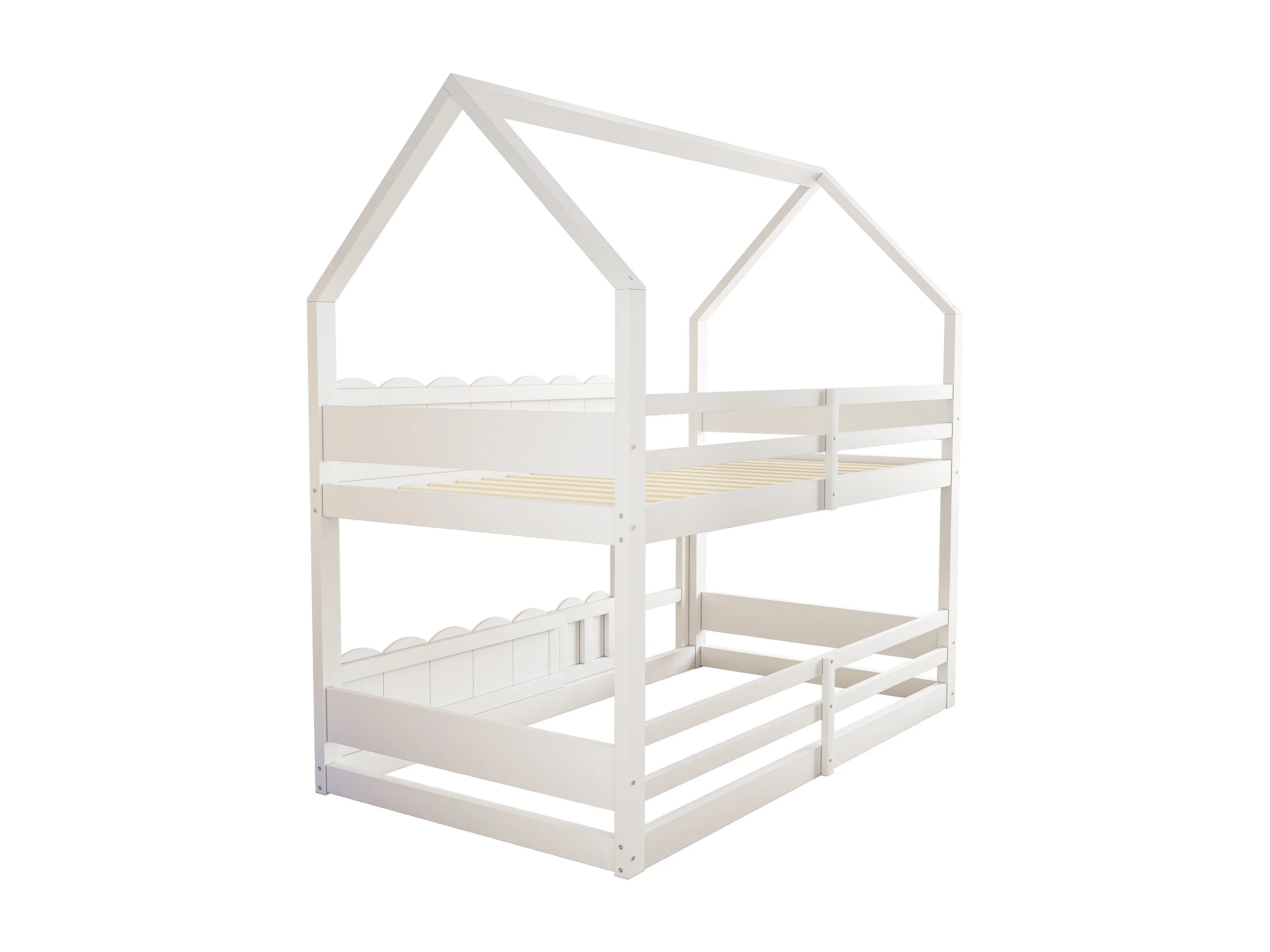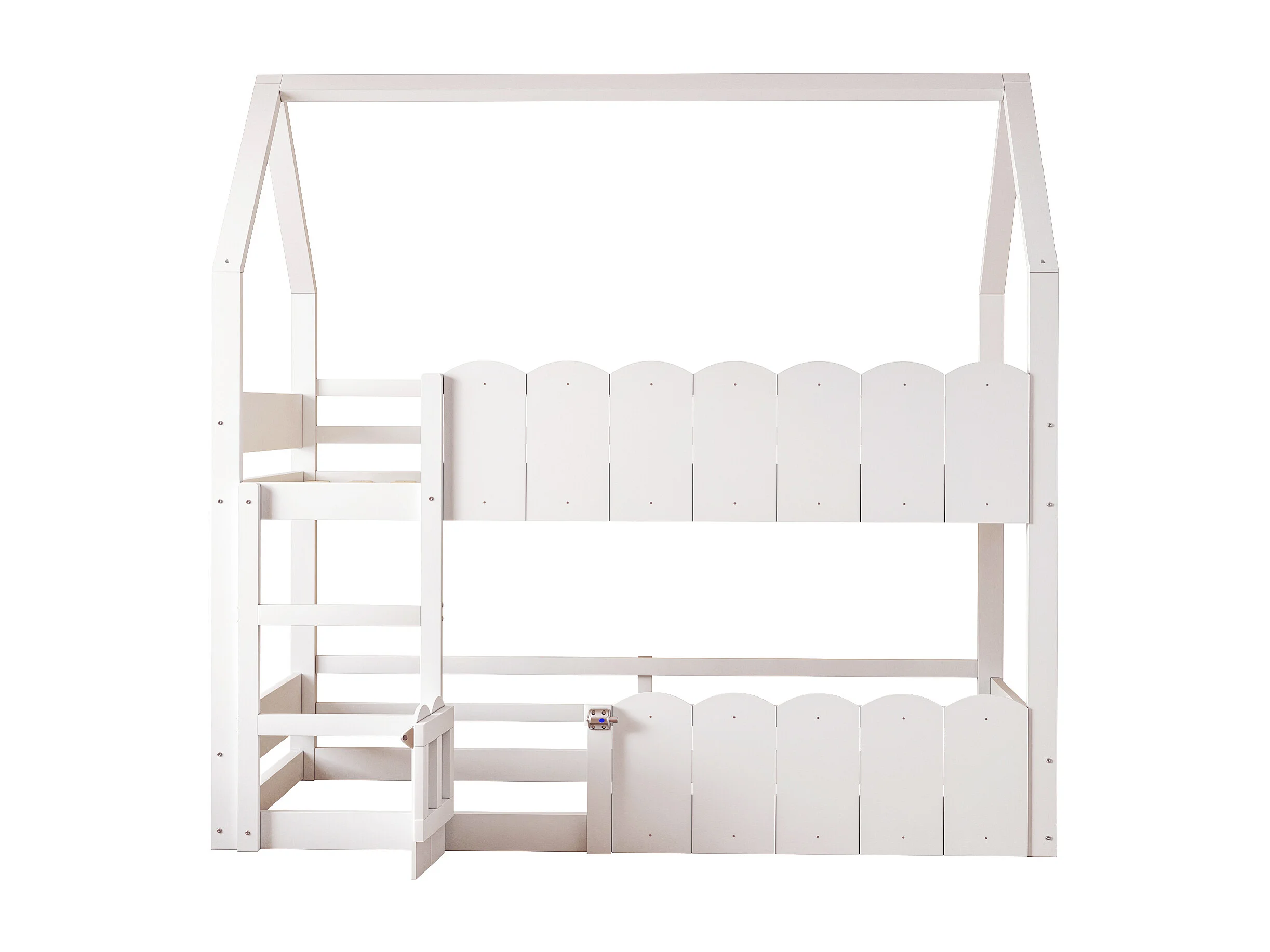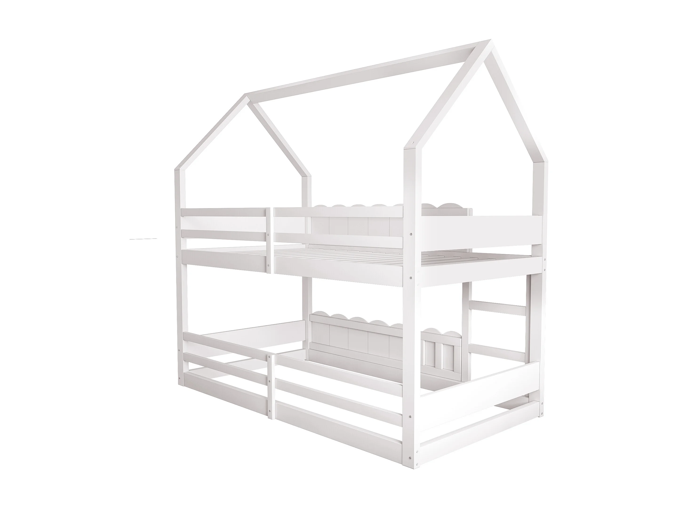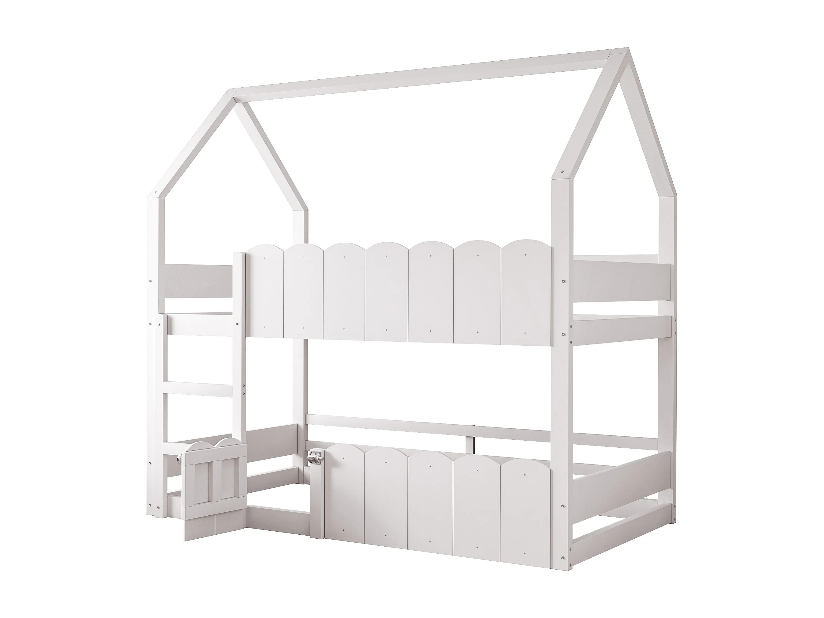 Litera de 90 x 200 cm - Cama infantil con barandillas de seguridad y escalera - madera blanca - colchón no incluido