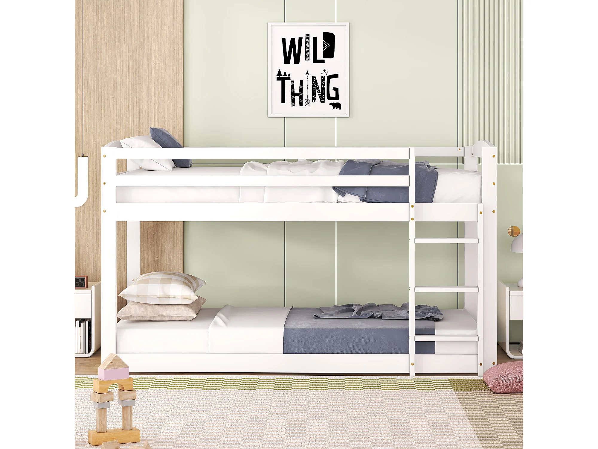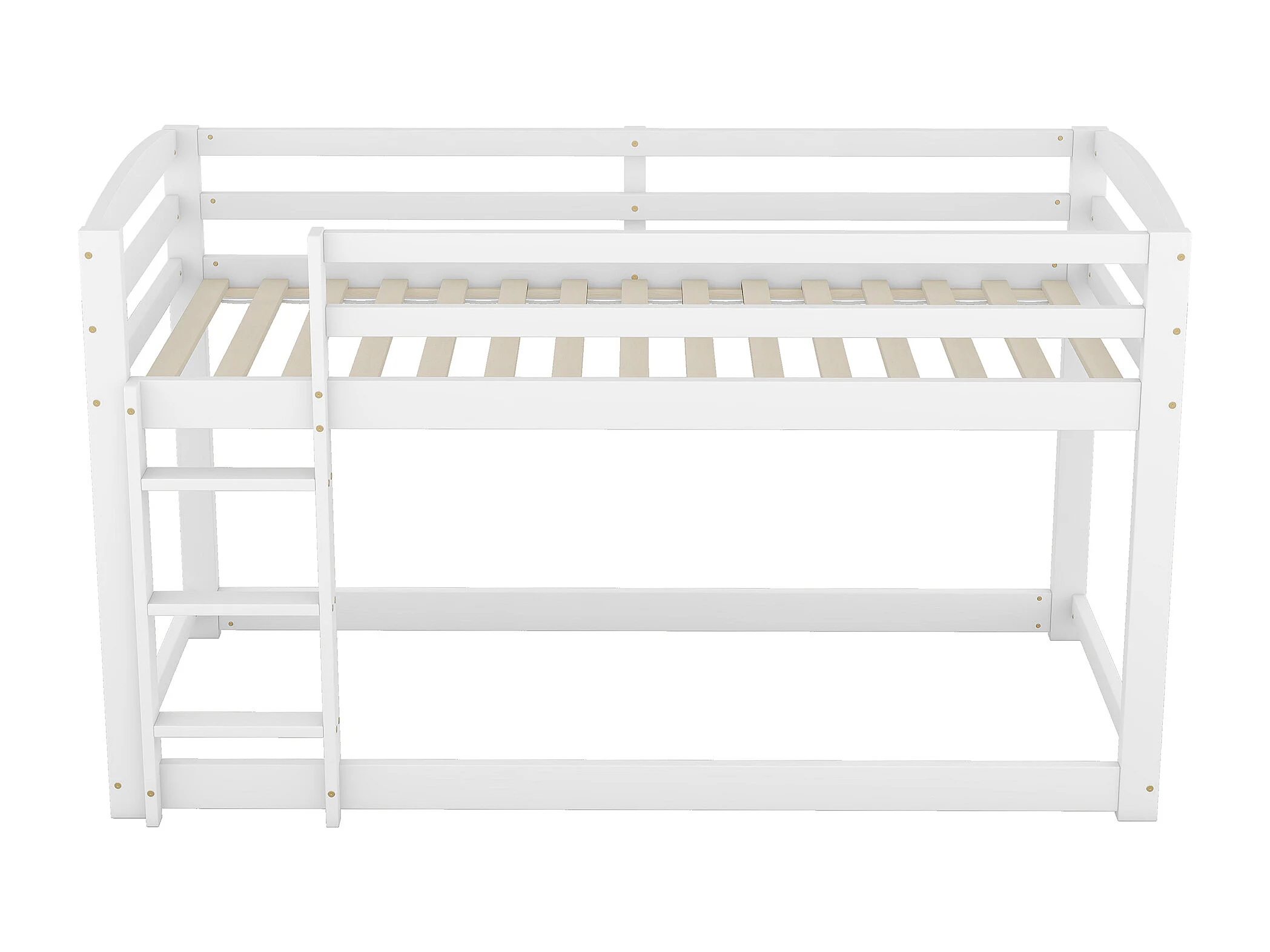Litera de 90 x 200 cm - modelo bajo - 15 somieres de láminas - madera blanca - colchón no incluido