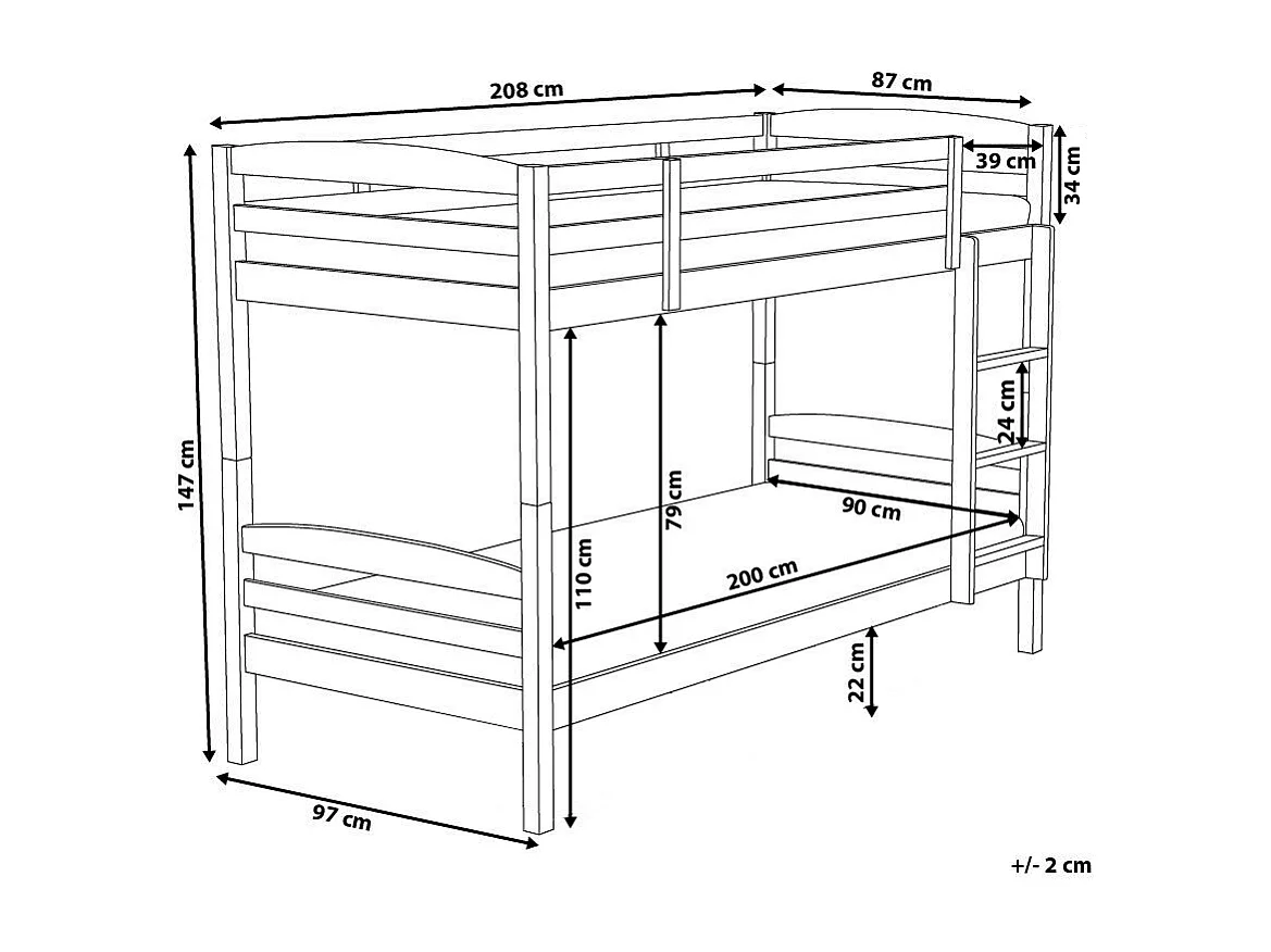 Litera Madera de pino REGAT 90 x 200 cm Gris