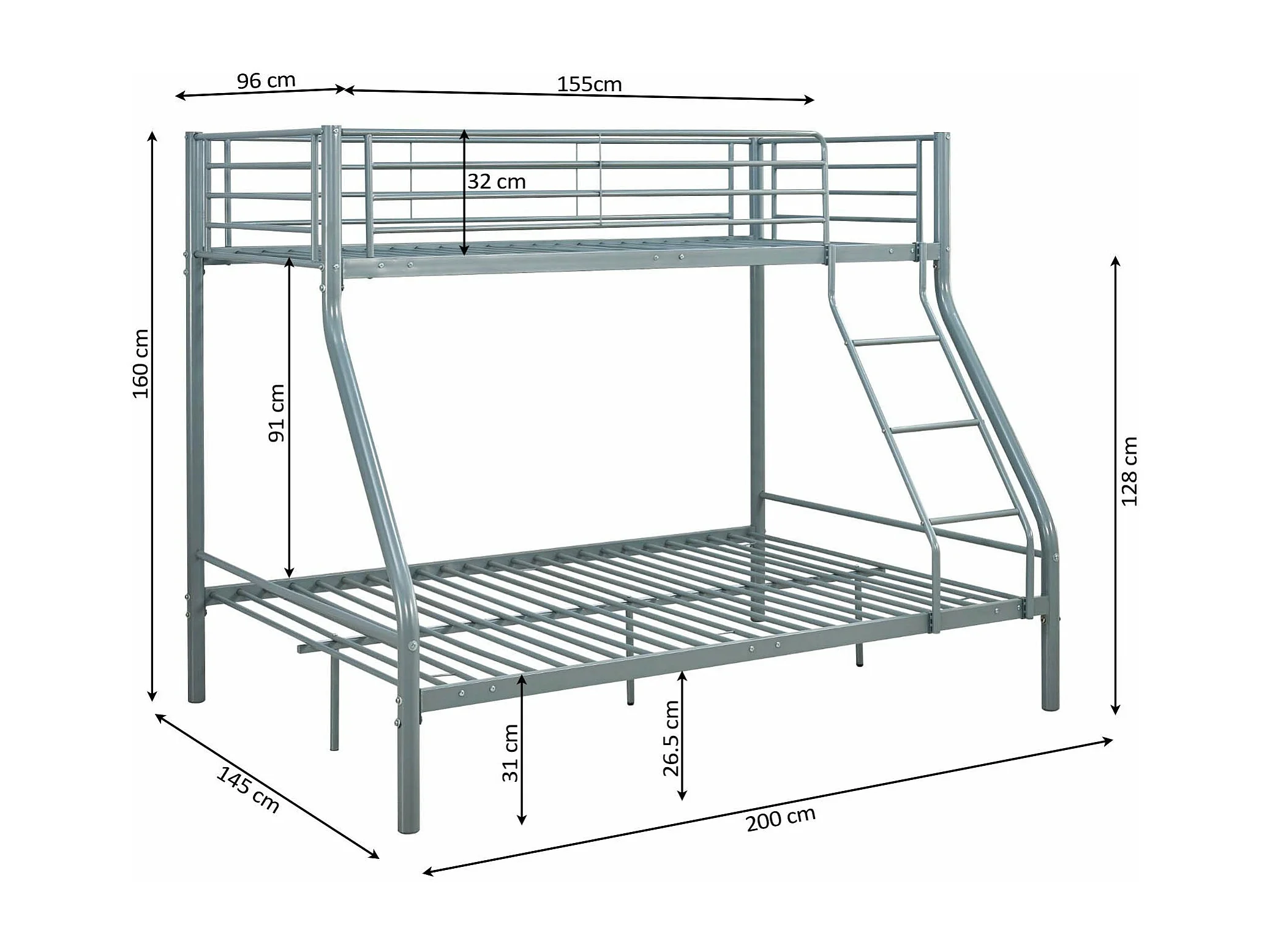 Litera de Matrimonio Metalica AS121 Negro + 1 Colchon de arriba (90x190 cm)