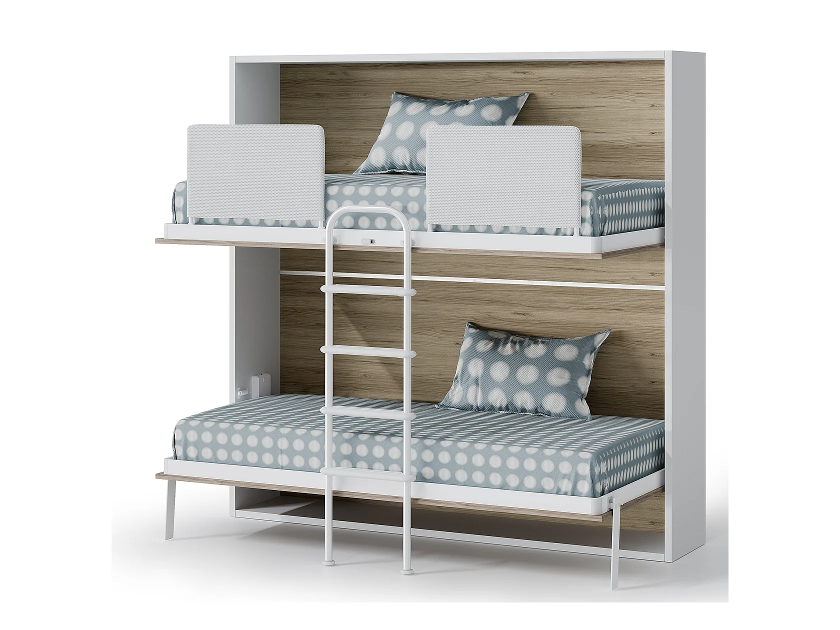 Litera escamoteable Sophia Gama alta-2 colchones-Ropa de cama 90x200 cm-Encofrado Roble claro-Frente Roble claro