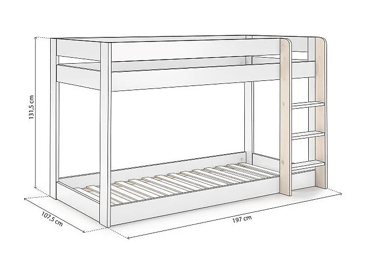 Litera de madera maciza de pino blanco 90x190 cm