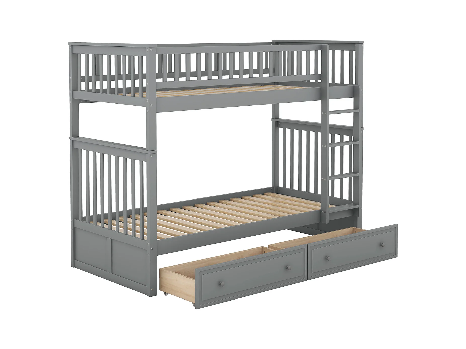 Cama infantil 90 x 200 cm con 4 cajones - Madera de pino + MDF - Somier de láminas - Gris (sin colchón)