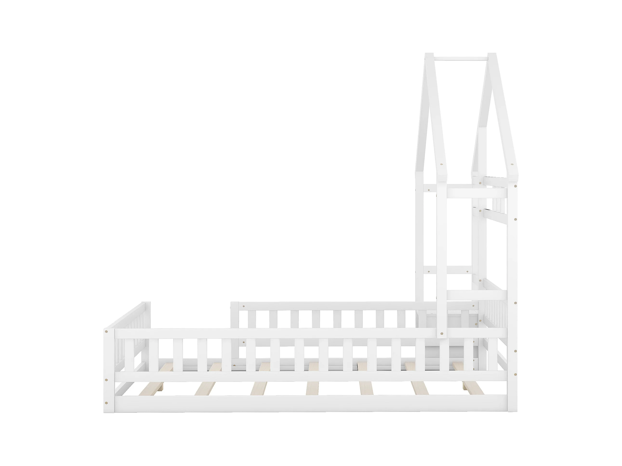 Litera infantil con tobogán y escalera, estructura de casa, 140x200cm, madera de pino, color blanco