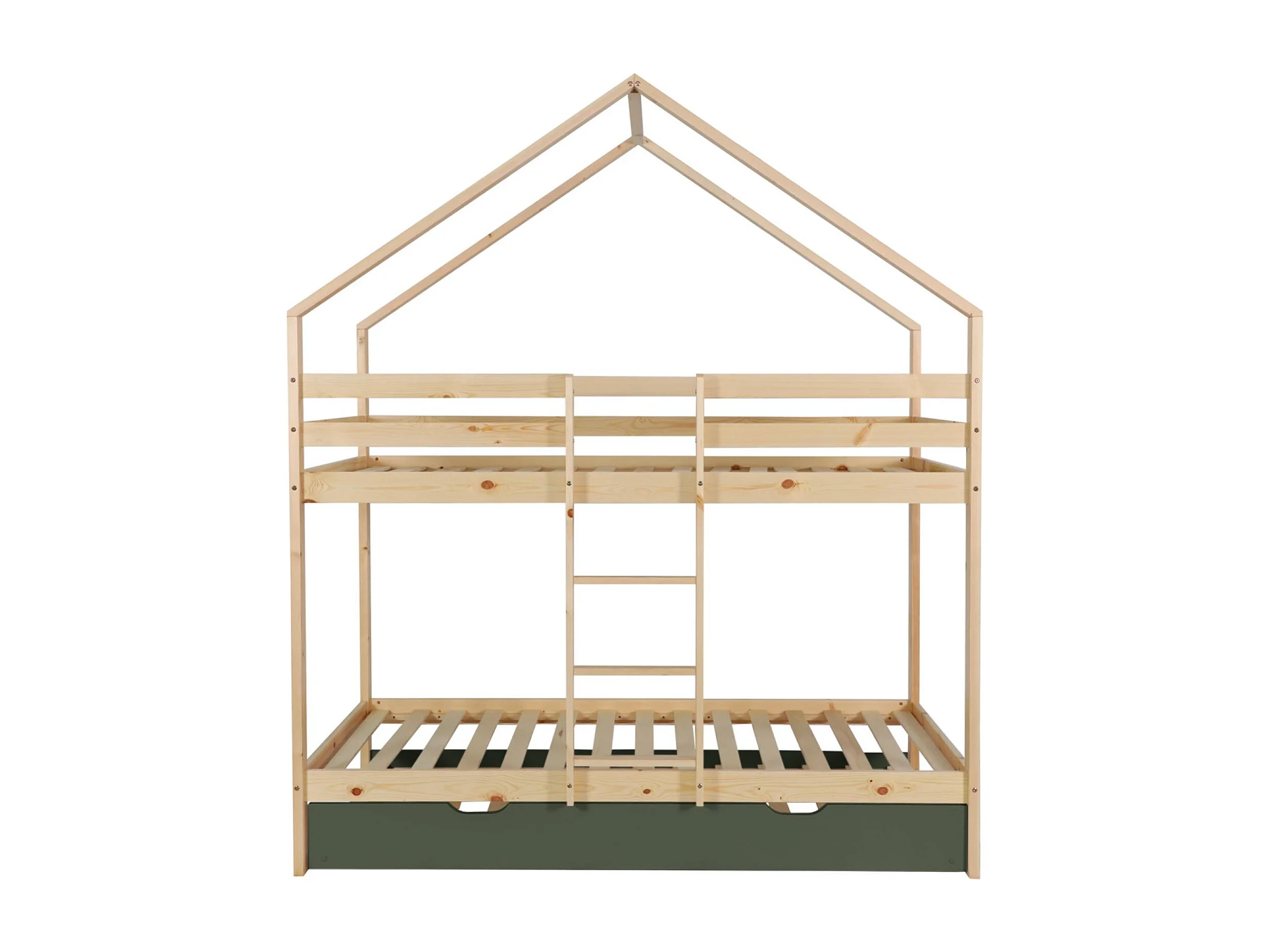 Litera infantil 190cm en pino natural estilo cabaña con somier y cajón