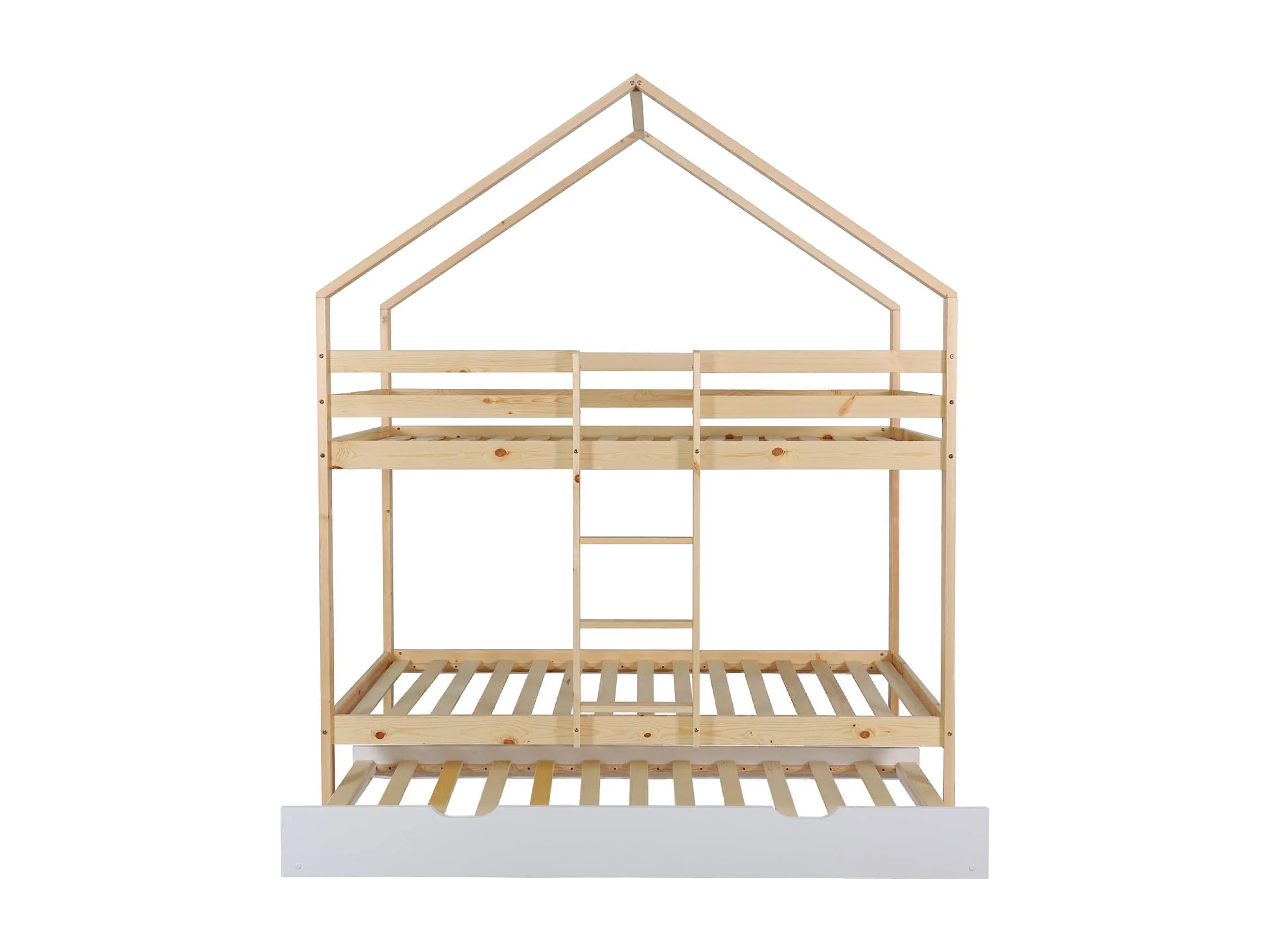 Litera infantil 190cm en pino natural estilo cabaña con somier y cajón