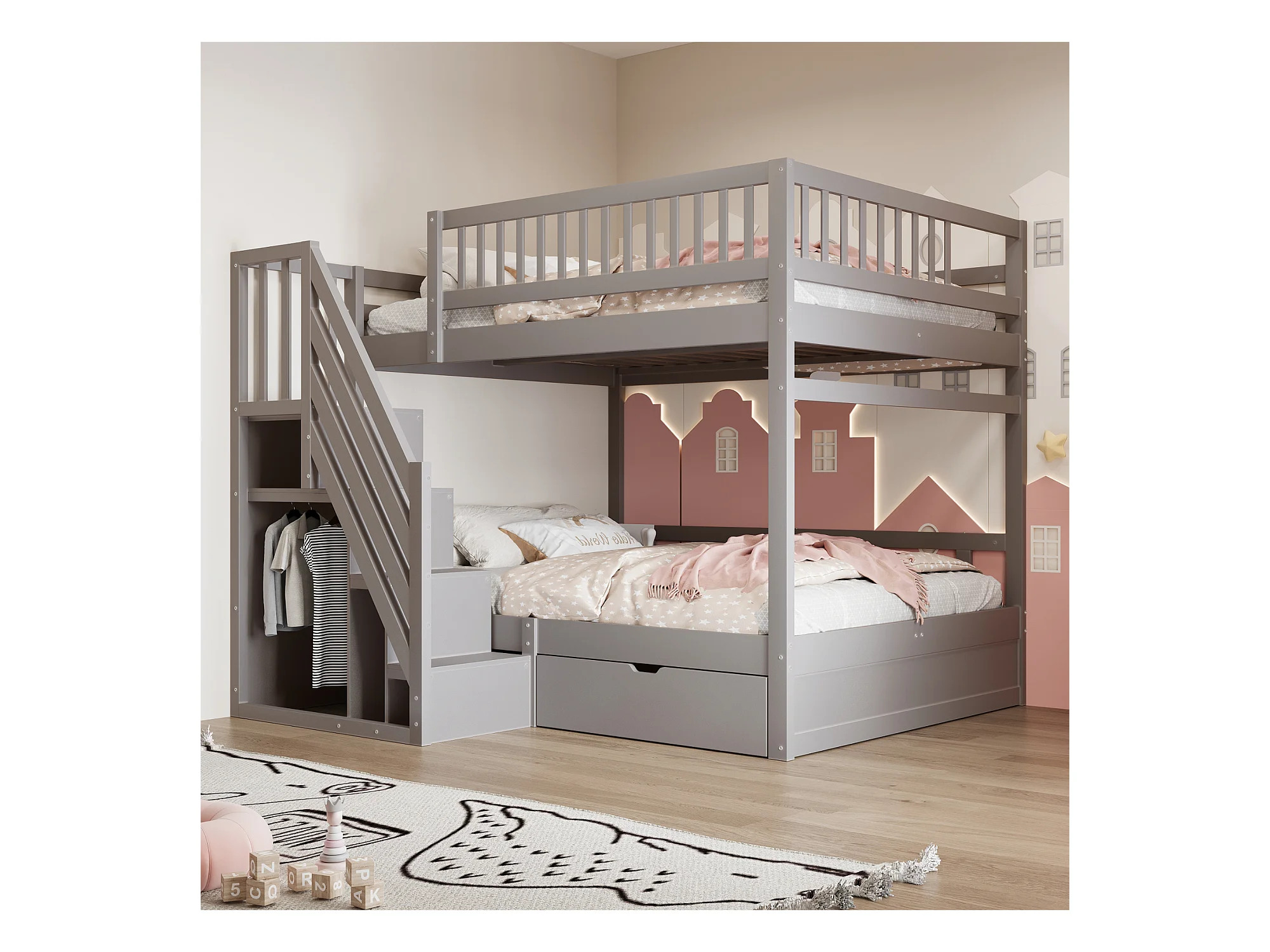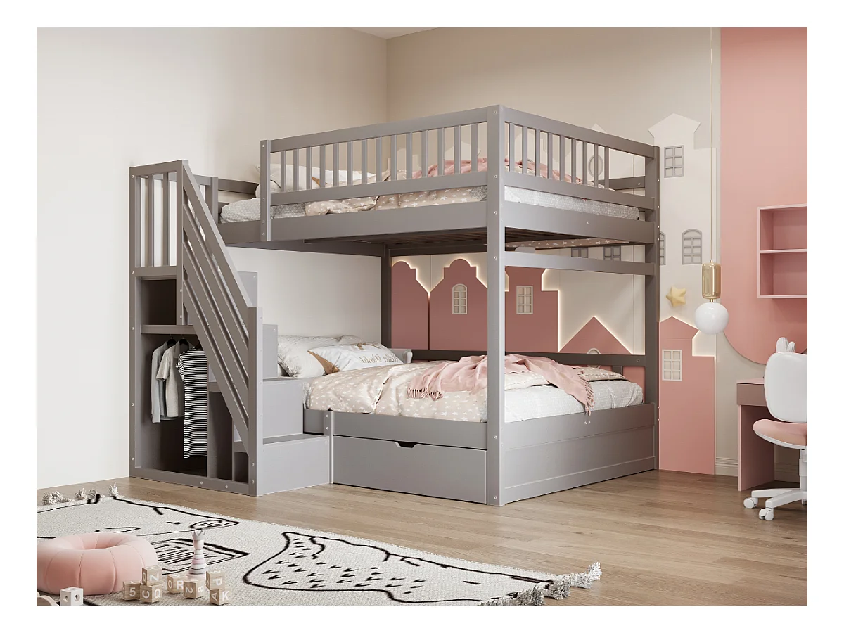 Litera de madera con cajones y escalera - 140x200cm - Gris